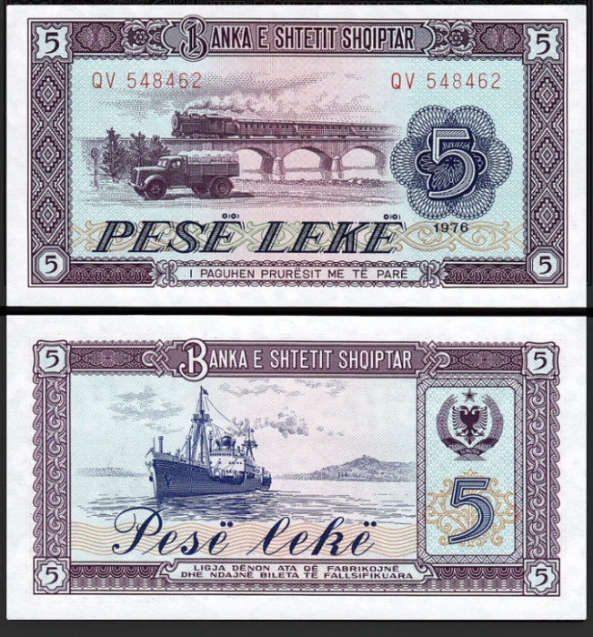 Albania 5 Leke 1976, necirculata