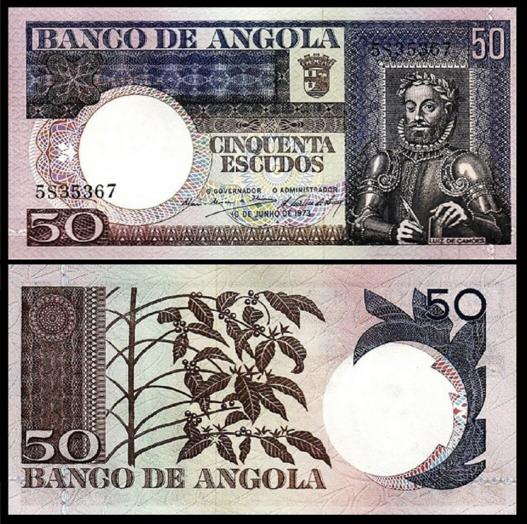 Angola 50 Escudos 1973, Luiz de Camões, aproape necirculata