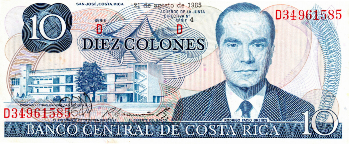 Costa Rica 10 colones 1985, aproape necirculata