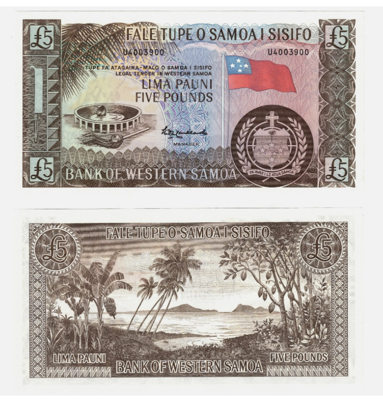 Samoa 5 Lire 1963 (2020), palmieri la Oceanul Pacific, necirculata
