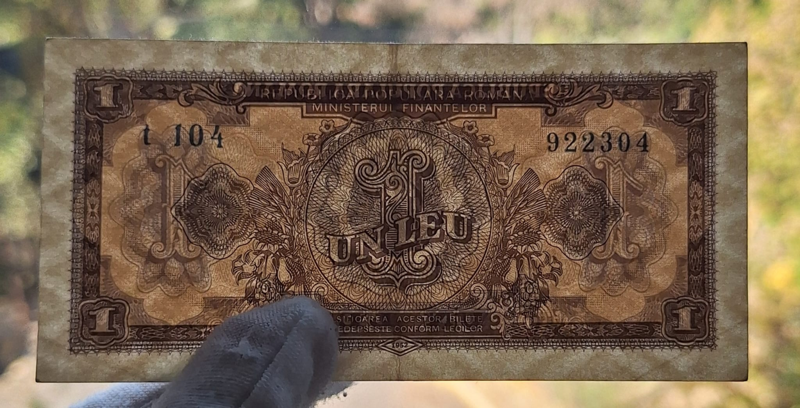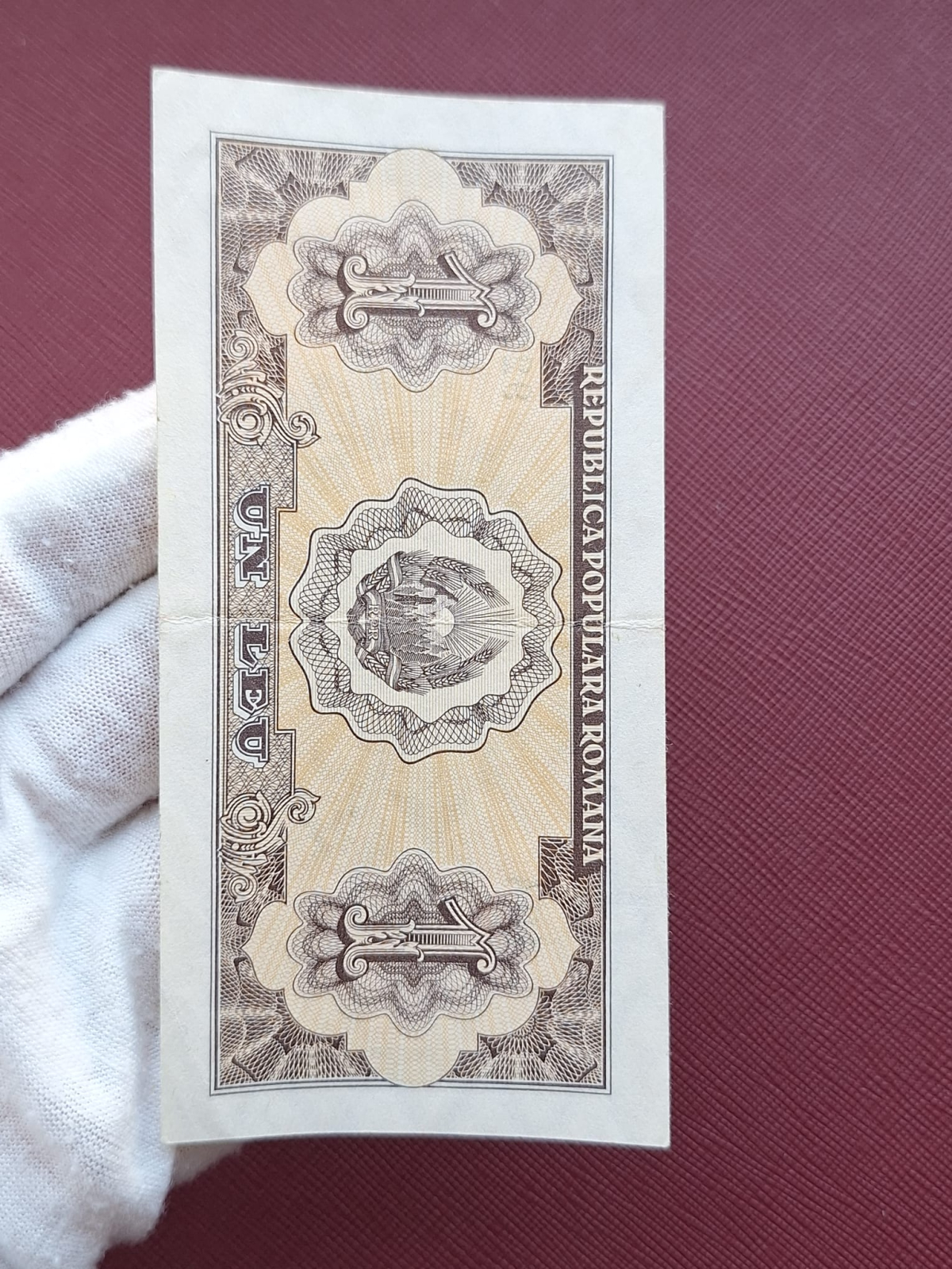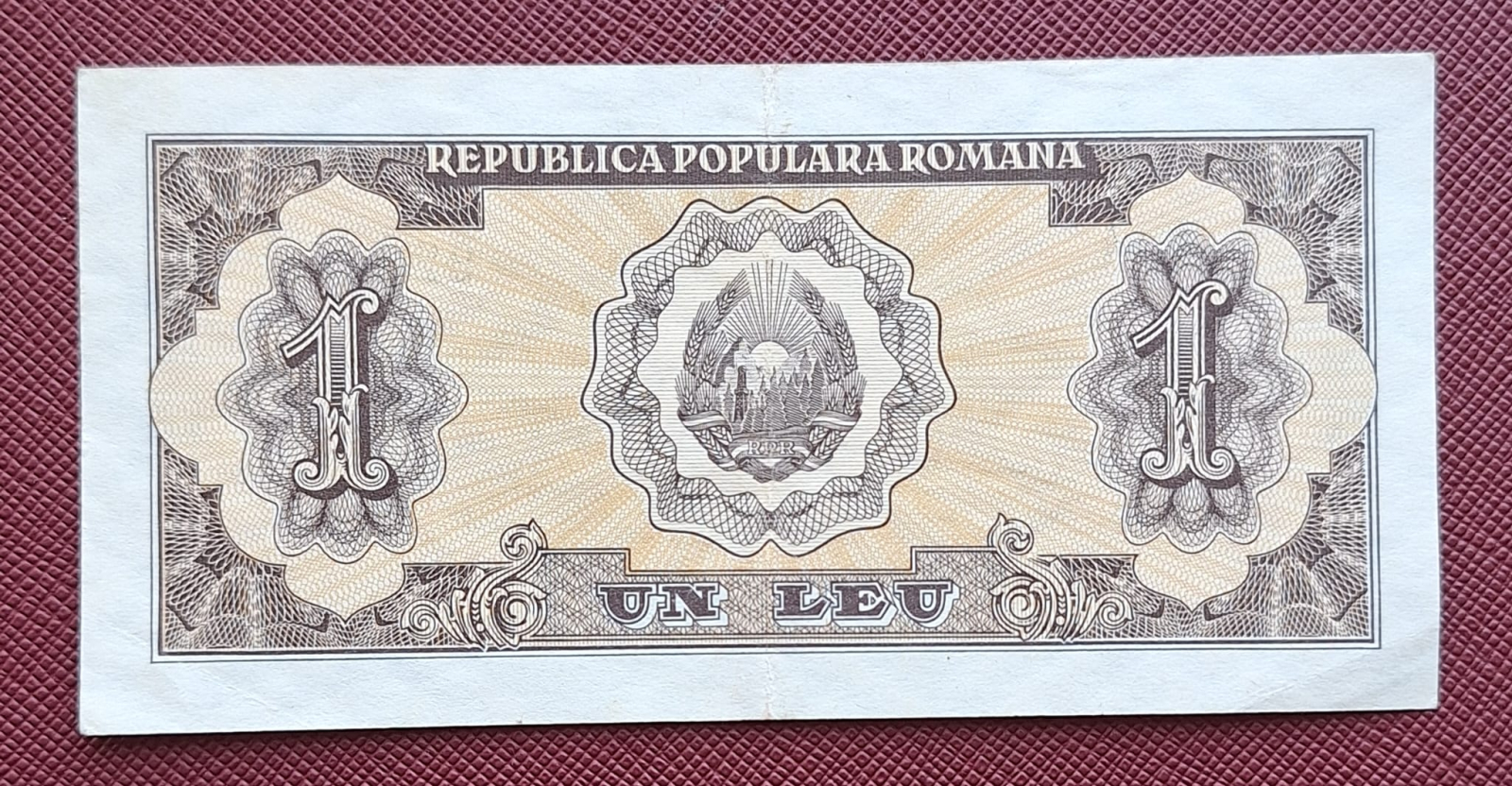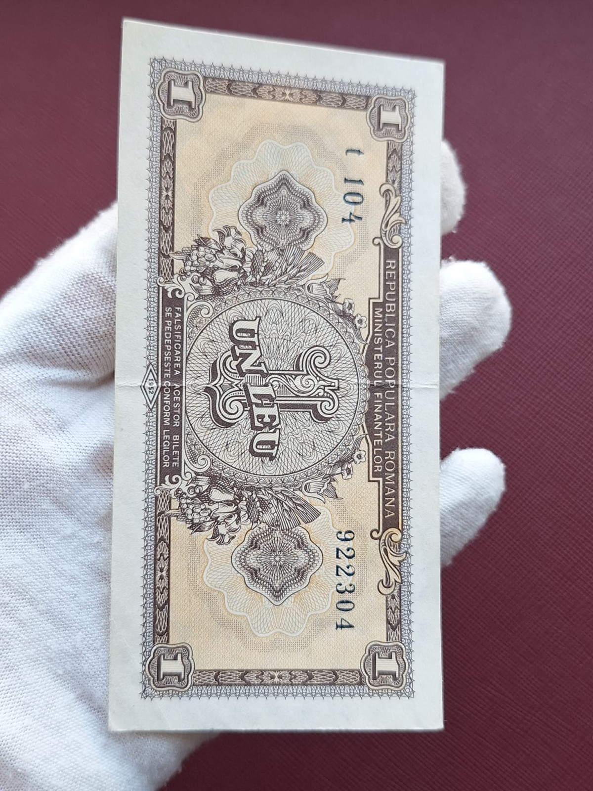 Romania, 1 leu 1952, seria t 104 / 922304, circulata