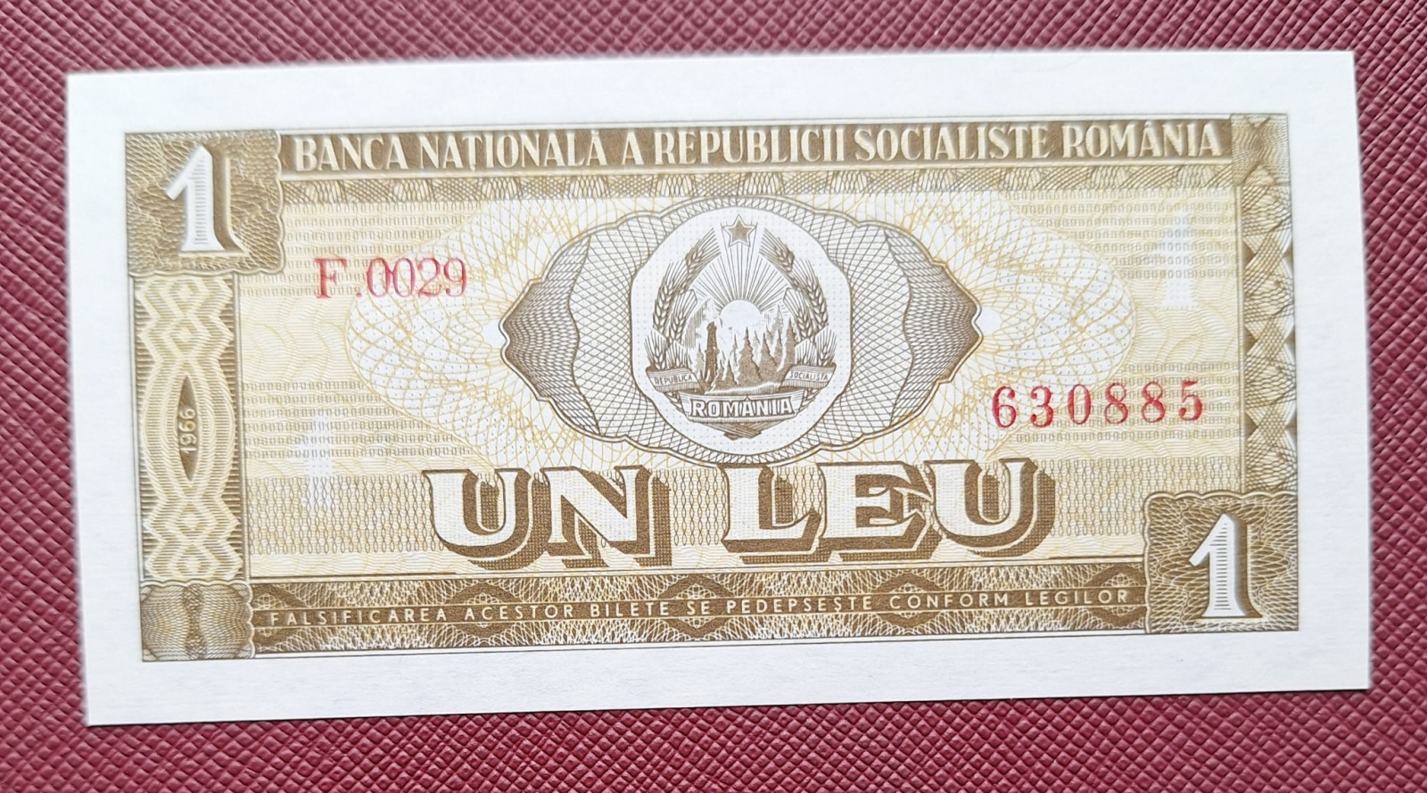 Romania 1 leu 1966, seria F.0029/630885, necirculata
