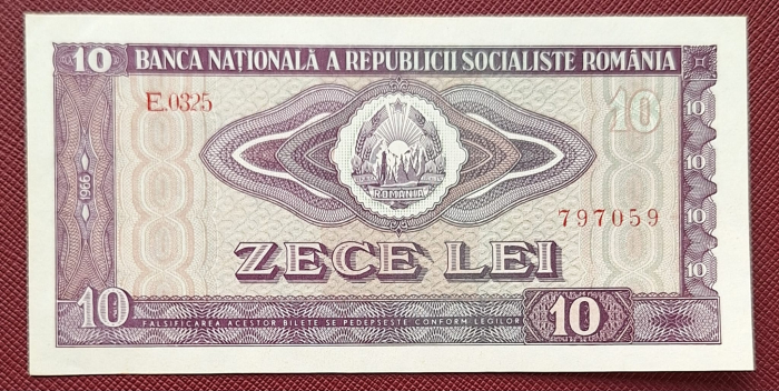 Romania 10 LEI 1966, seria E.0325/797059, UNC-