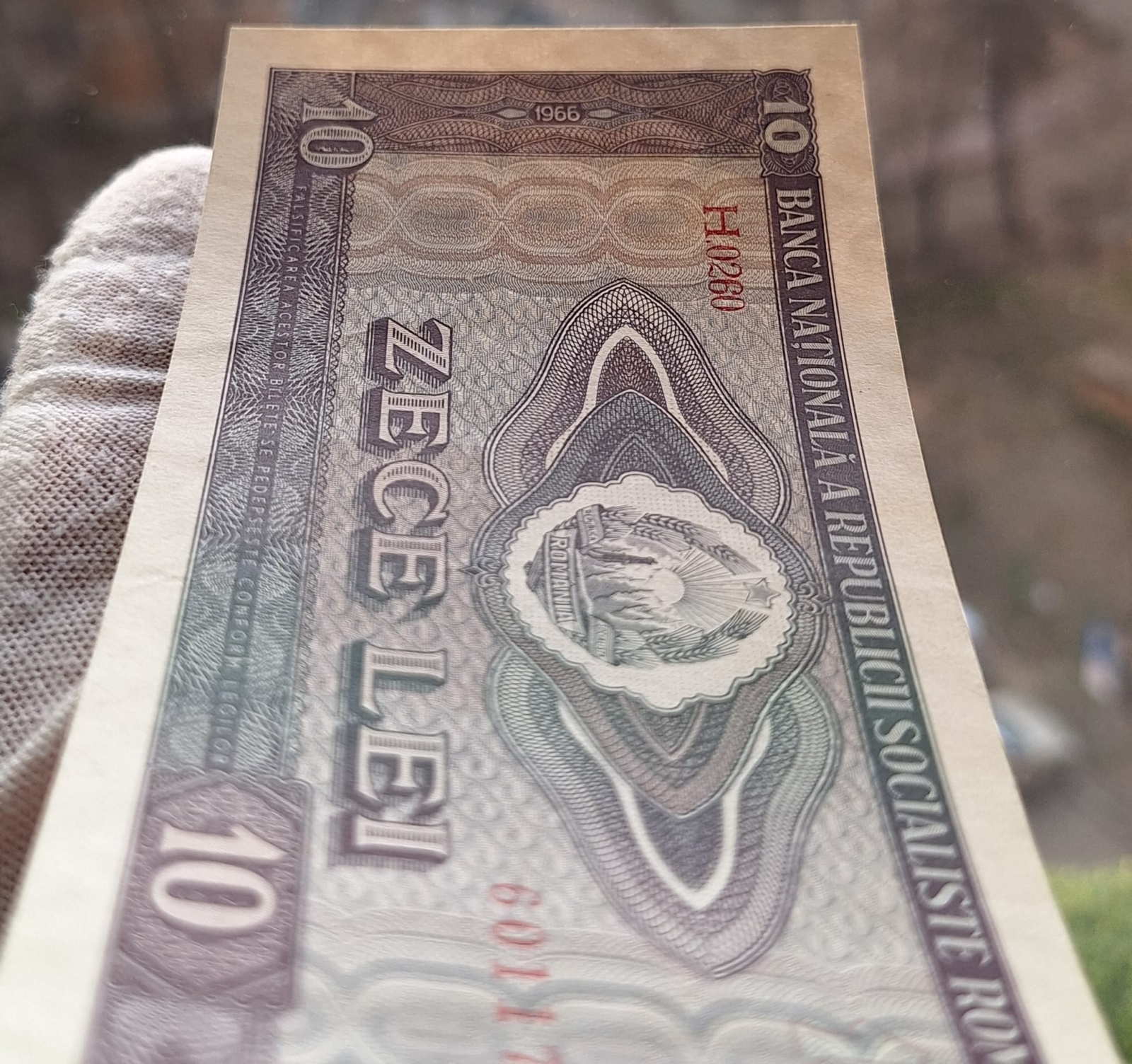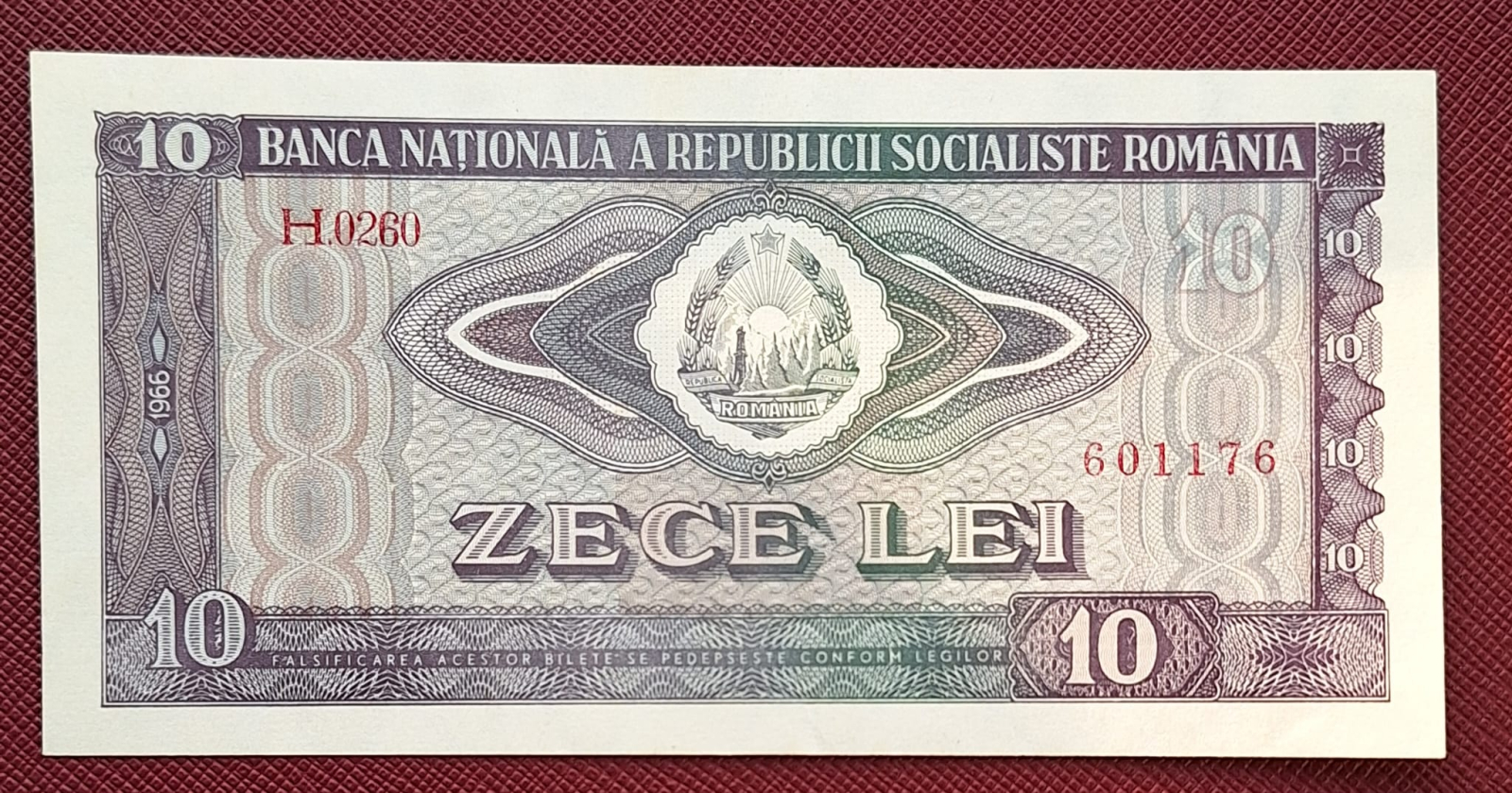 Romania 10 LEI 1966, seria H.0260/601176, aproape necirculata