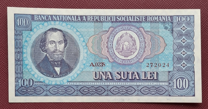 Romania 100 lei 1966, seria A.0238/272024, necirculata