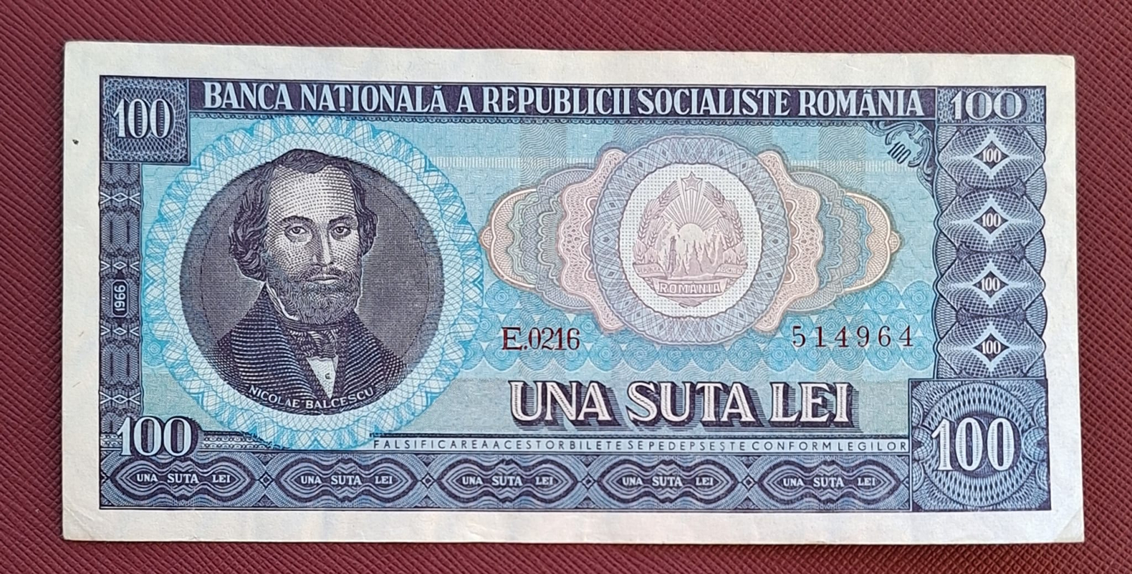 Romania 100 lei 1966, seria E.0216/514964, circulata