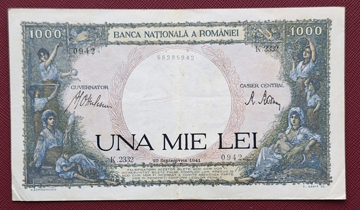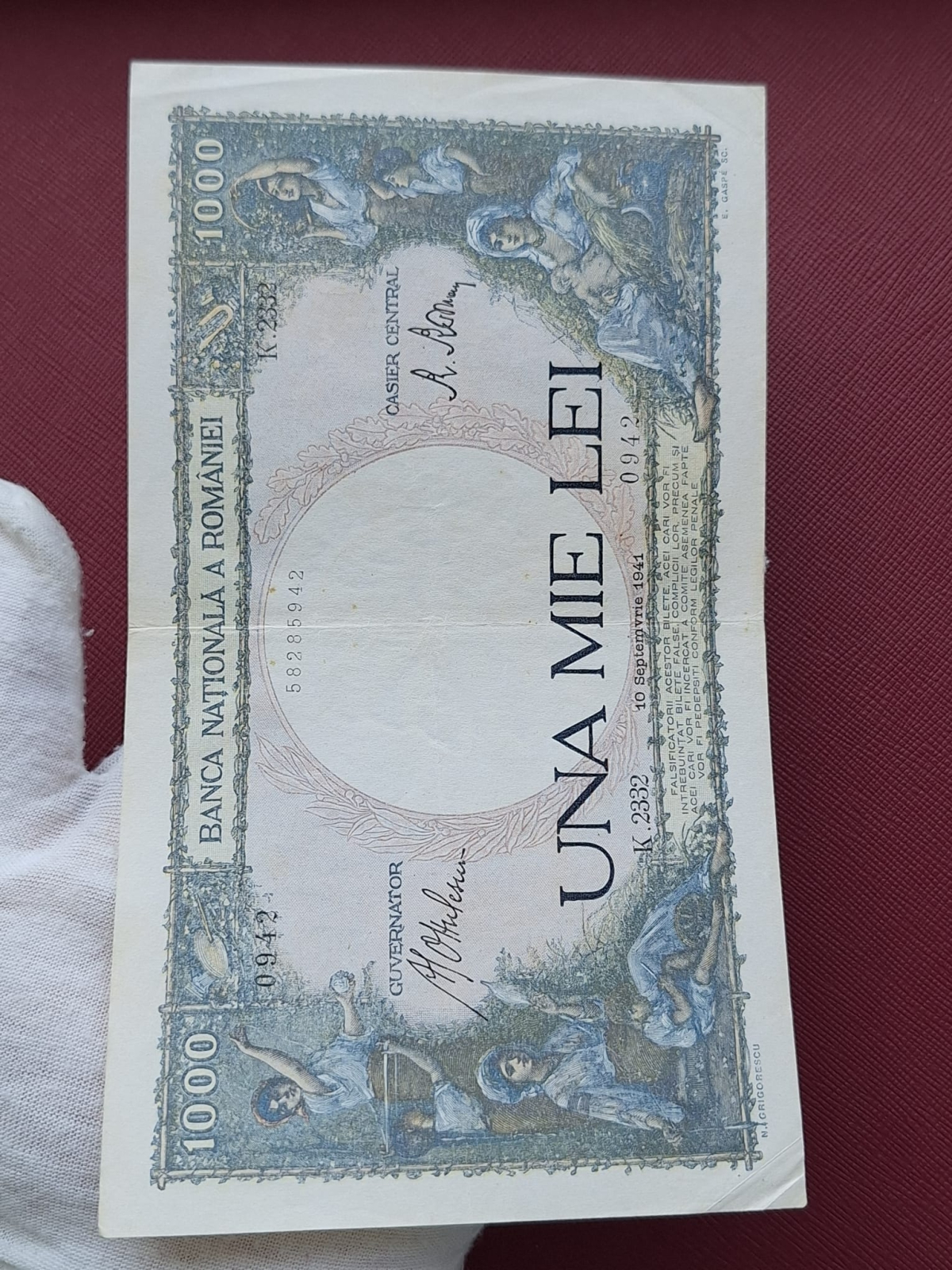 Romania, 1000 lei 1941, seria K.2332/0942/58285942, circulata