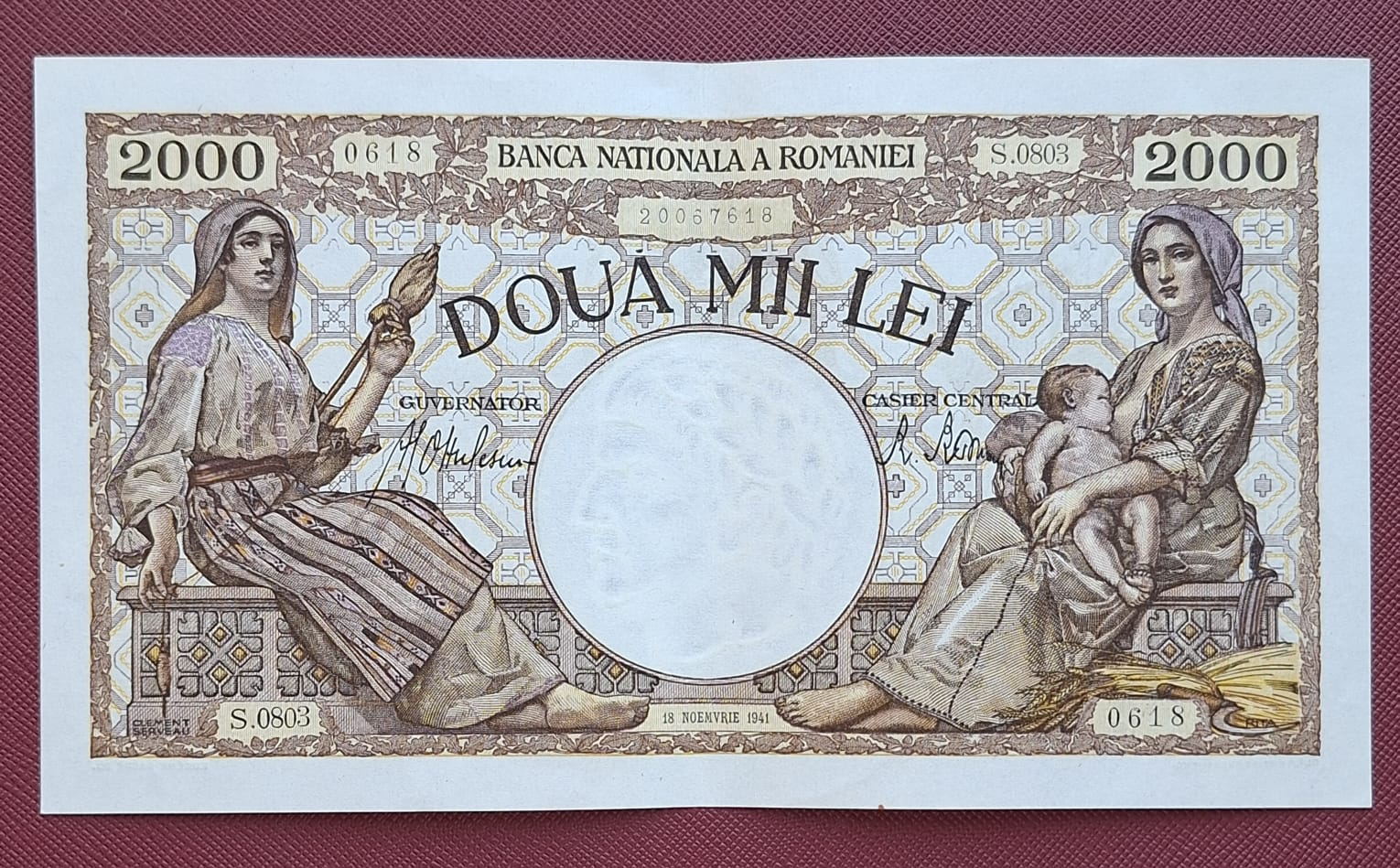 Romania, 2000 lei 1941, seria S.0803/0618/20067618, aproape necirculata