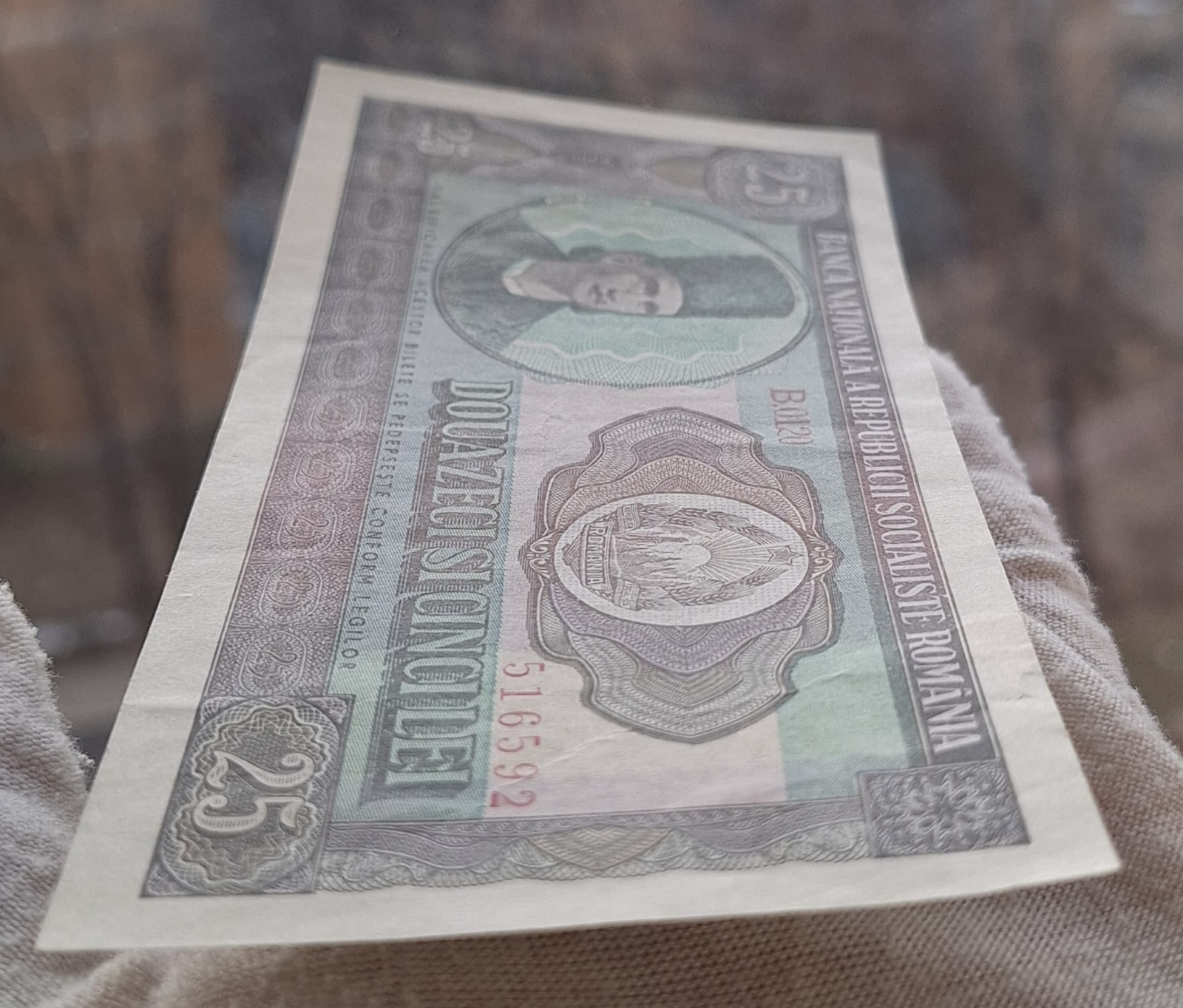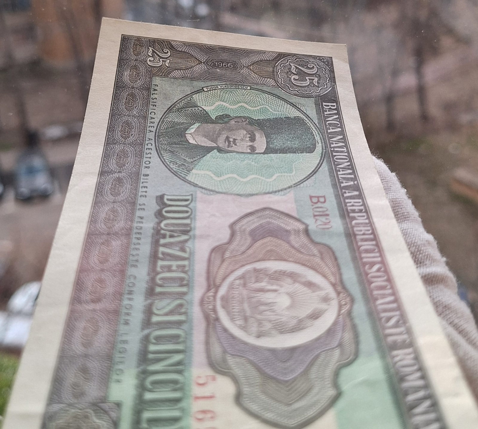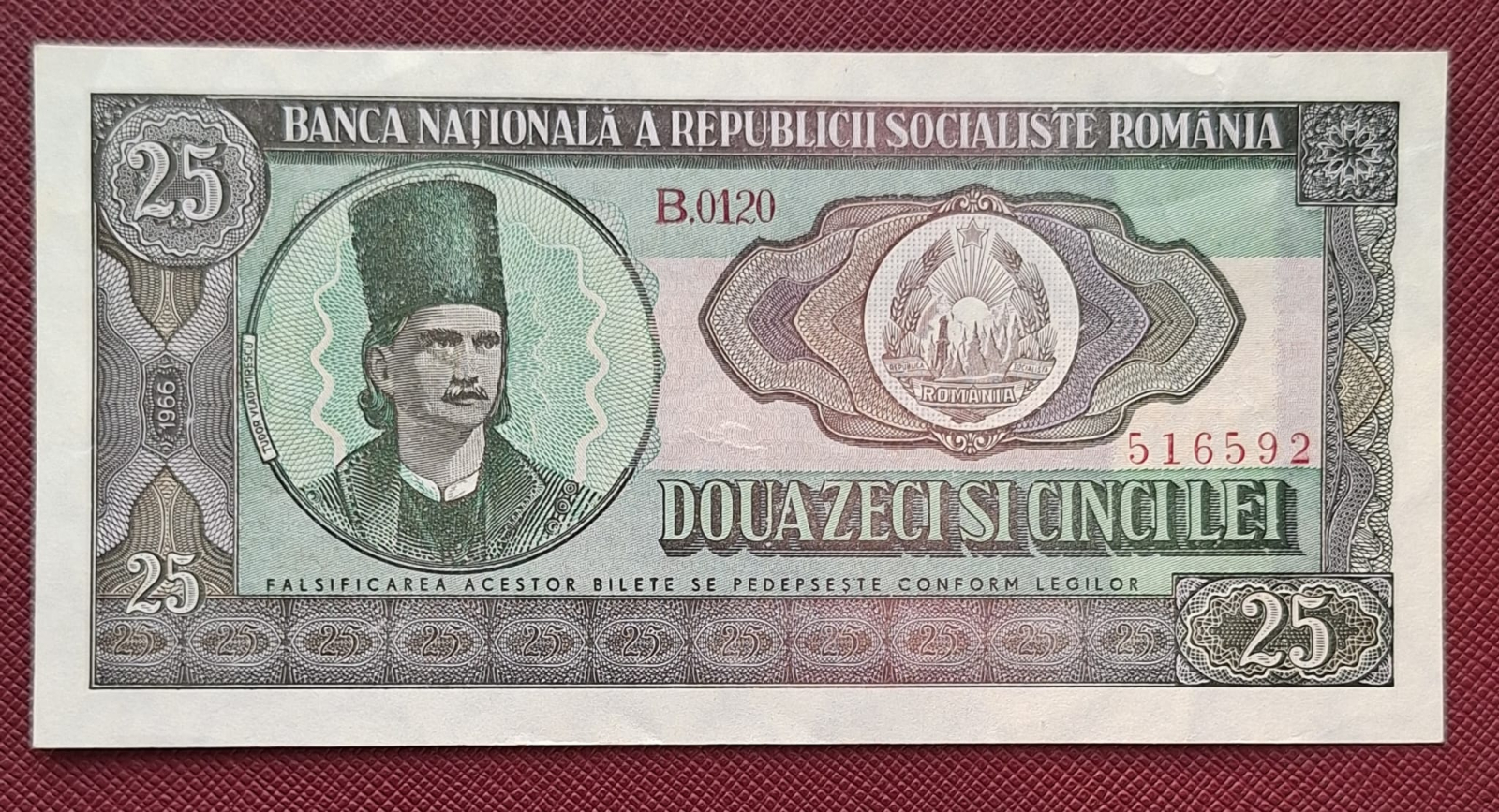 Romania 25 lei 1966, seria B.0120/516592, circulata