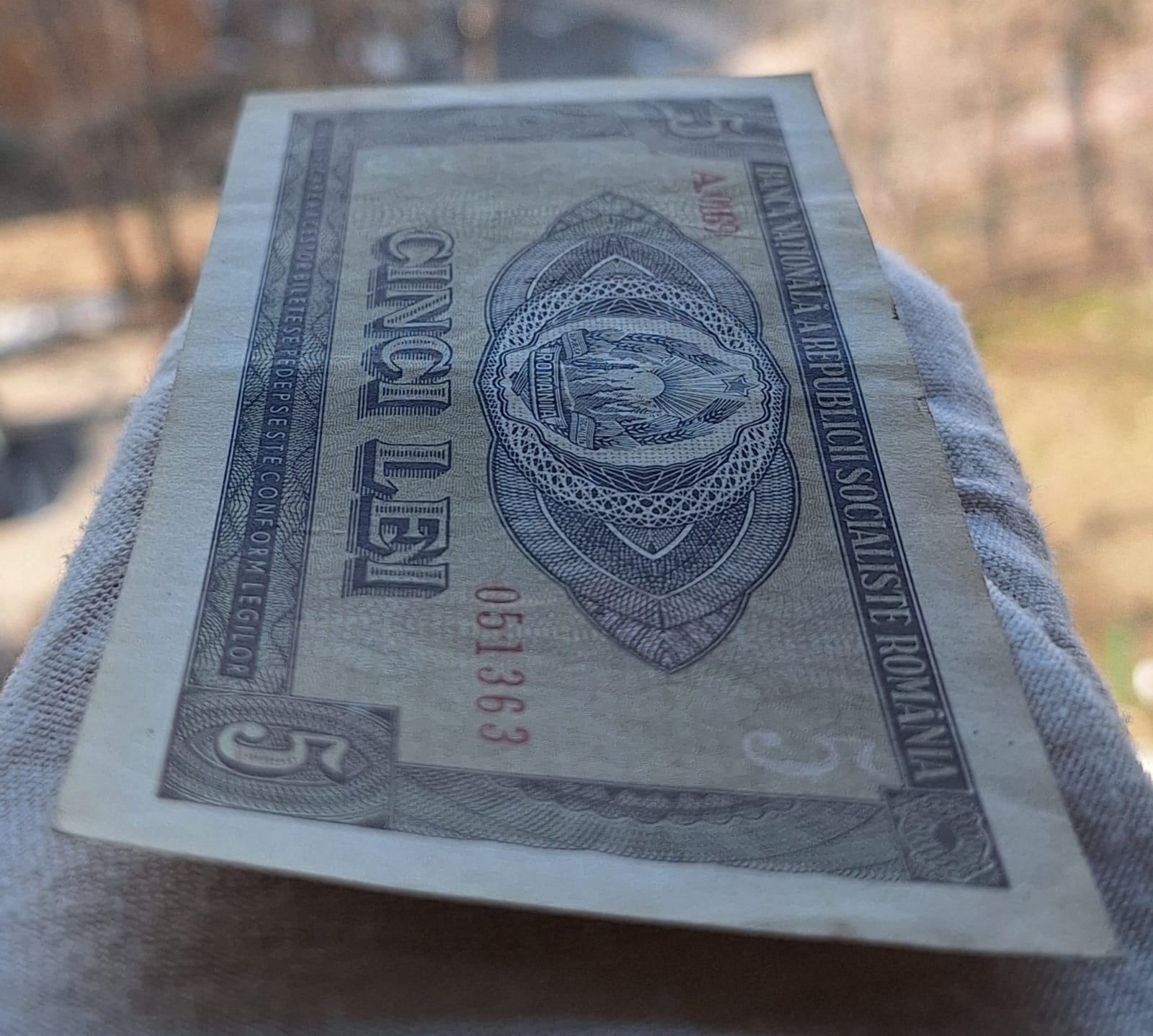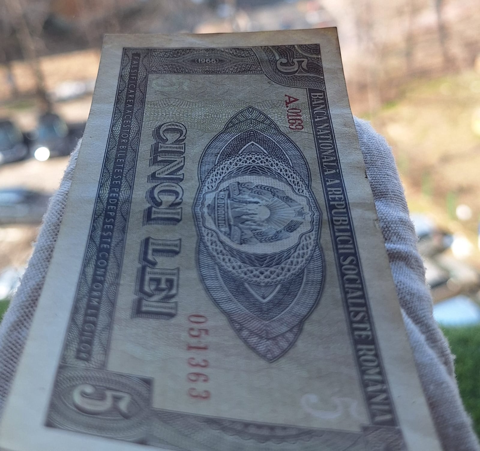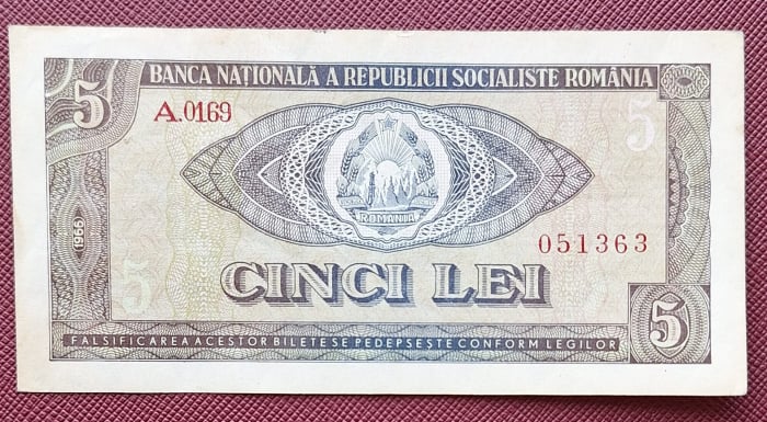Romania 5 lei 1966, seria A.0169/051363, circulata