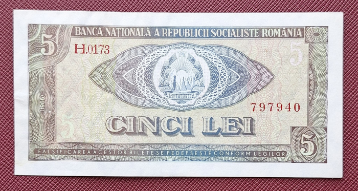 Romania 5 lei 1966, seria H.0173/797940, circulata, stare buna