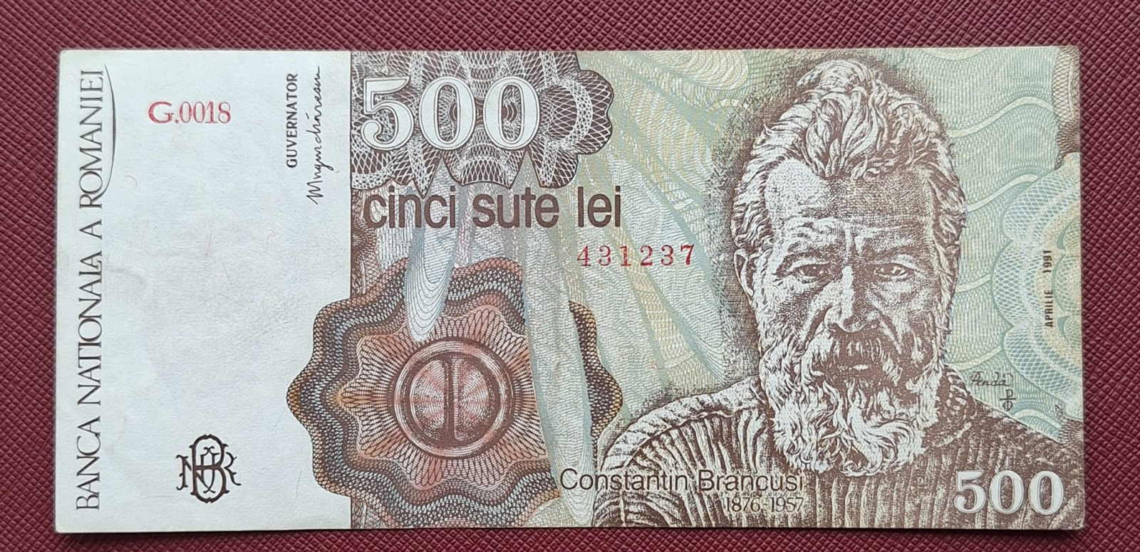 Romania, 500 Lei Aprilie 1991, seria G.0018/431237, stare buna