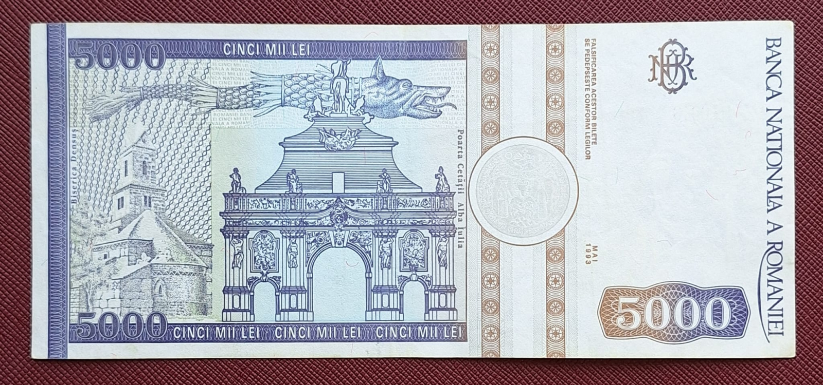 Romania, 5000 lei 1993, seria H.0016/954479, aproape necirculata