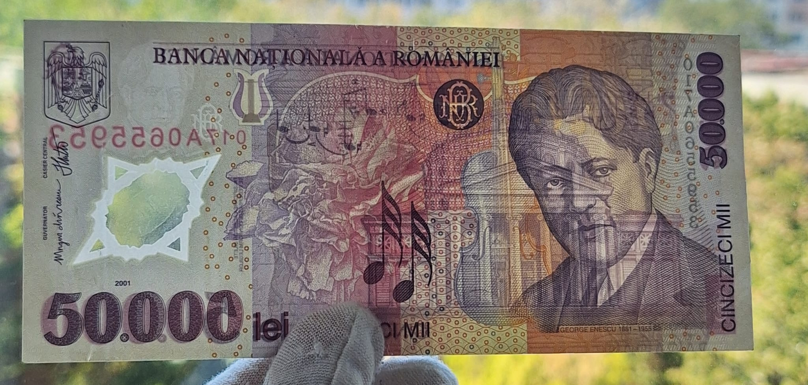 Romania, 50000 lei 2001 George Enescu, seria 017A0655953, circulata