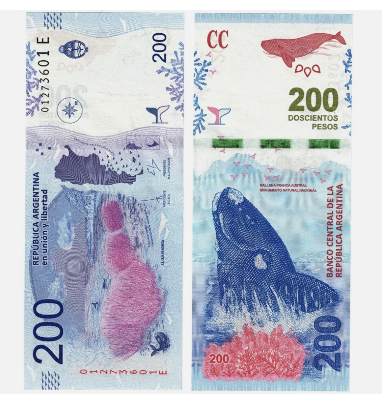 ARGENTINA 200 pesos 2016, Balena Albastra, necirculata