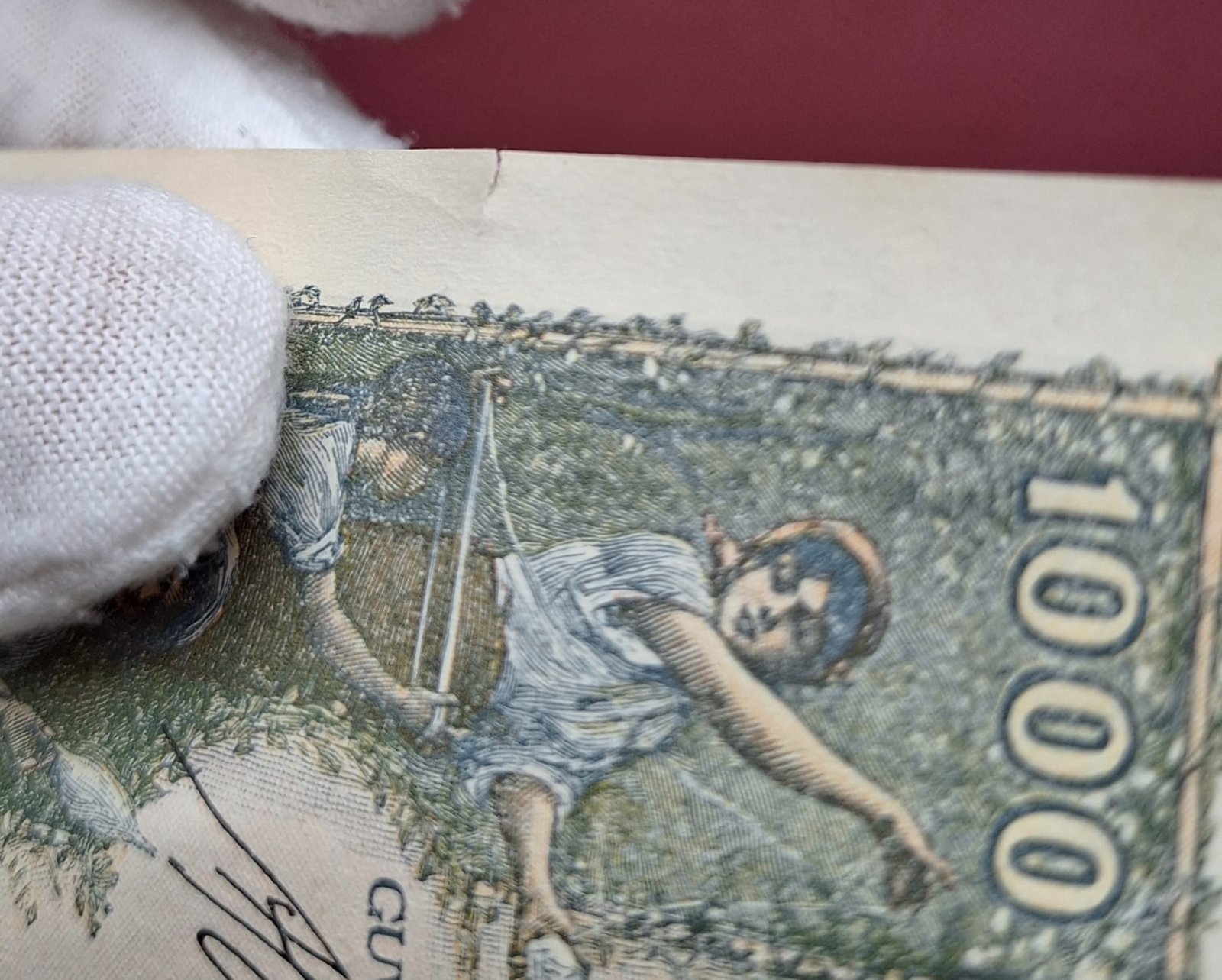 Romania, 1000 lei 1941, seria O.0643/0124/16064124, Aunc, cu mica ruptura