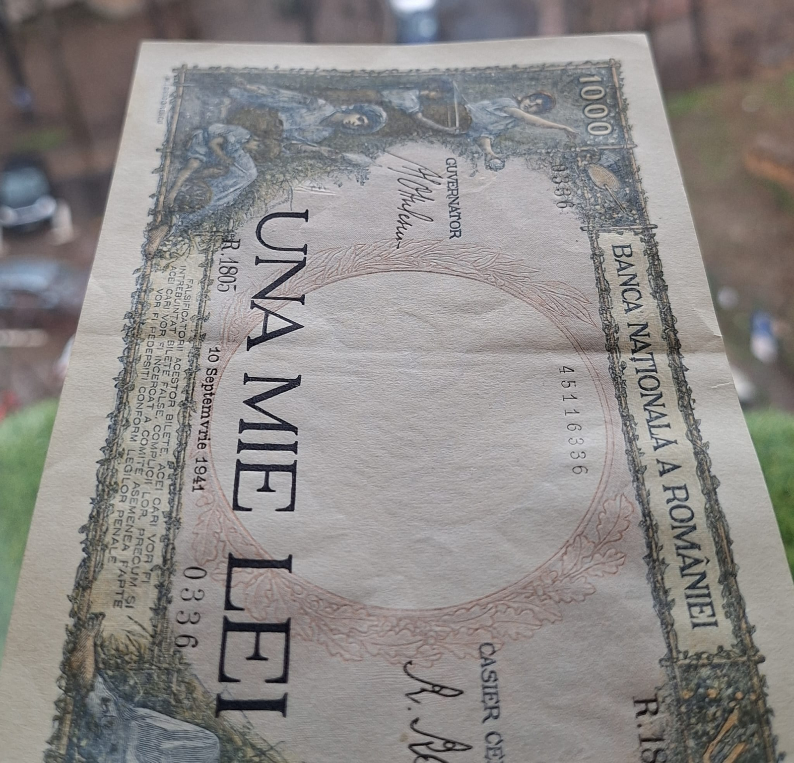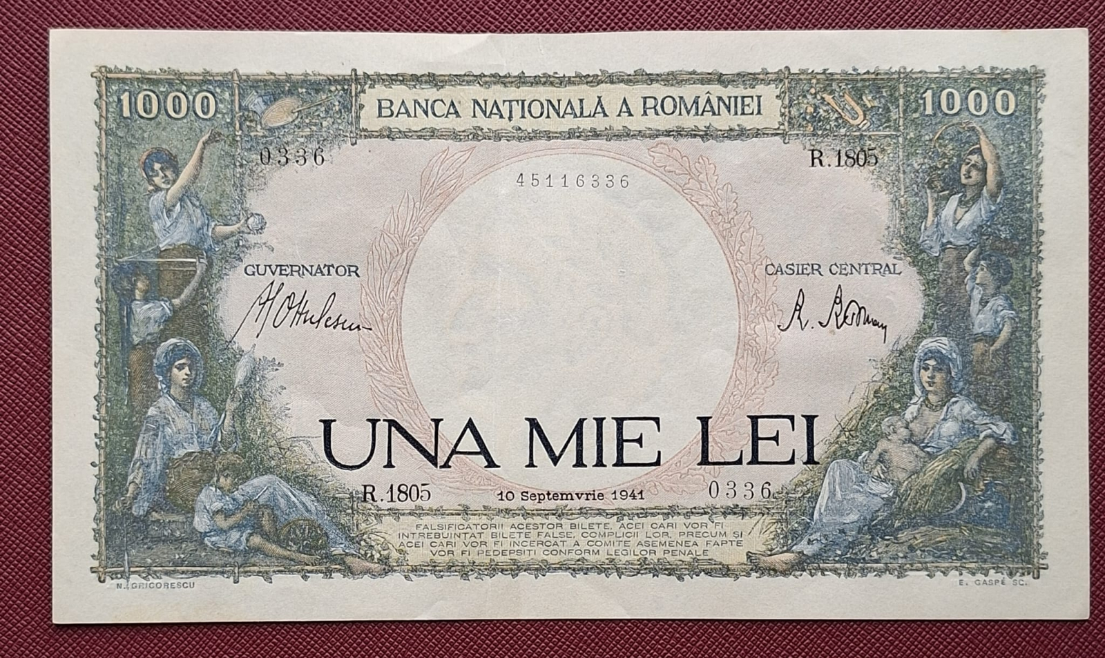 Romania, 1000 lei 1941, seria R.1805/0336/45116336, Aunc