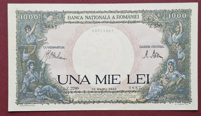 Romania, 1000 lei 1943, seria Z.2789/0887/69723887, aUNC