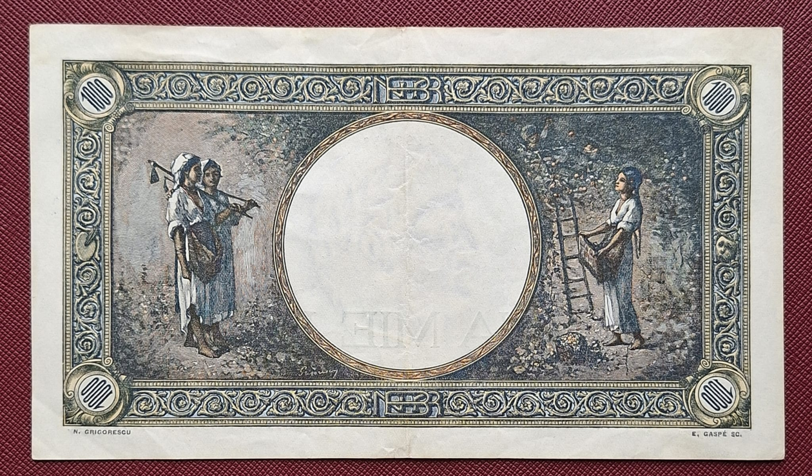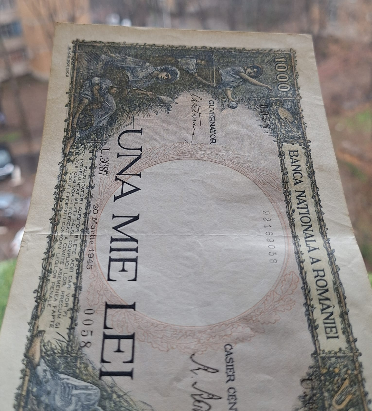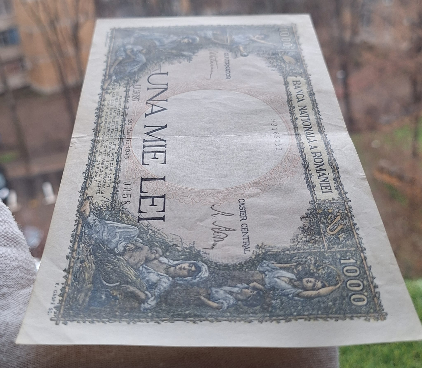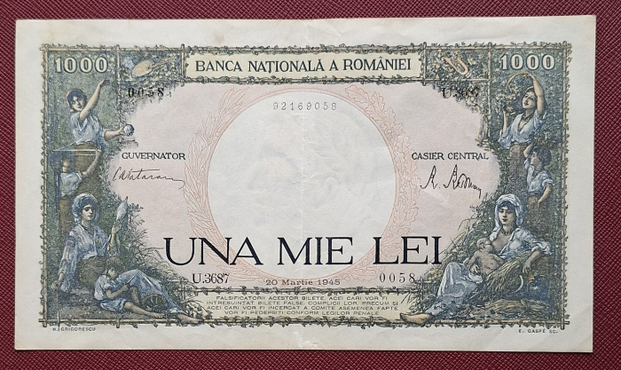 Romania, 1000 lei 1945, seria U.3687/0058/92169058, circulata
