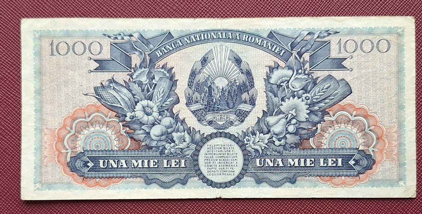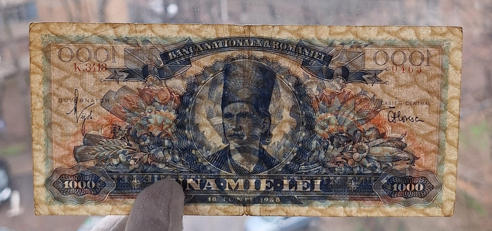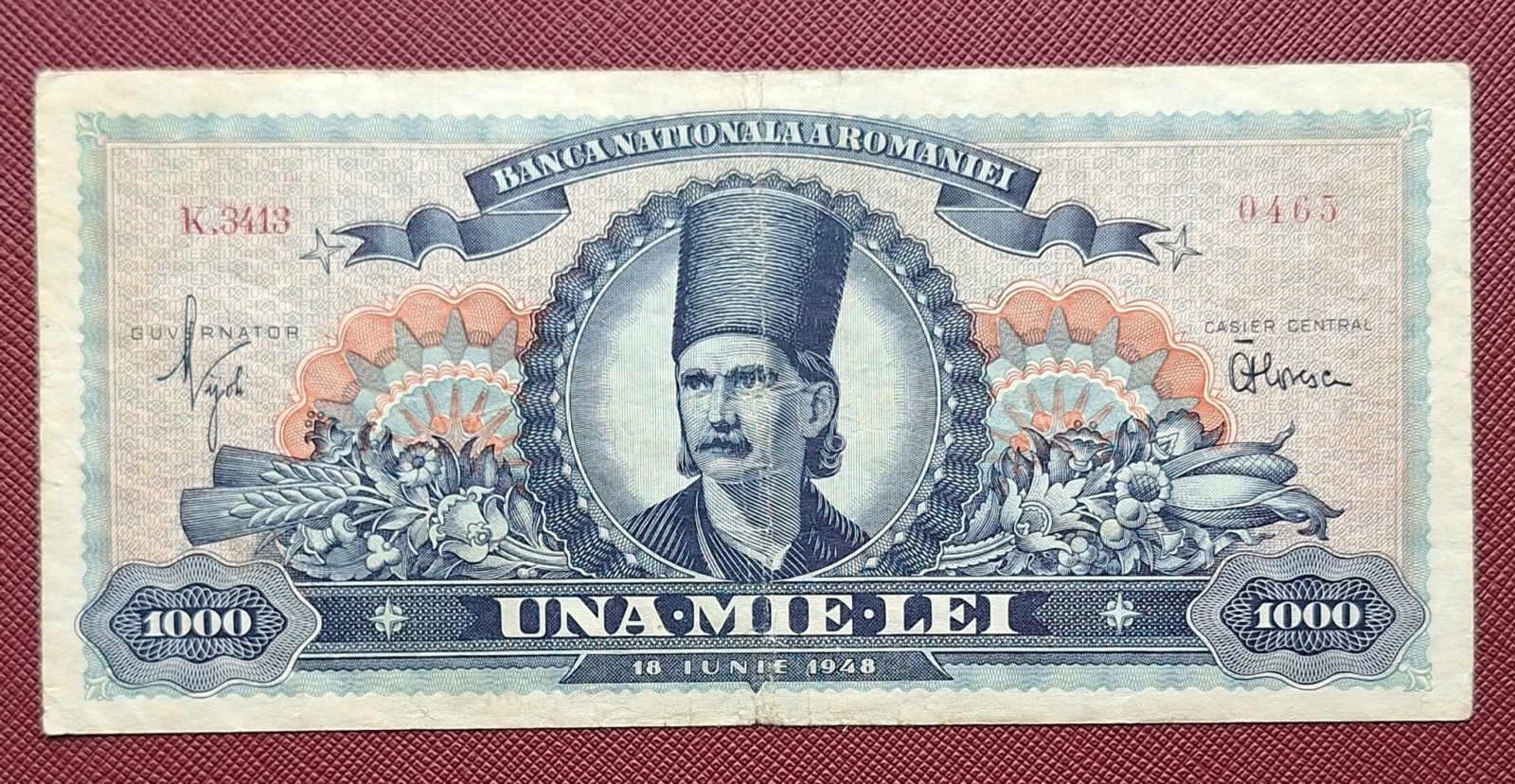 Romania 1000 lei iunie 1948, seria K.3413/0465, circulata
