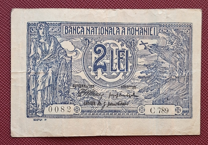 Romania, 2 lei 1915, semnatura rara Danielopol, serie din 3 cifre: C789