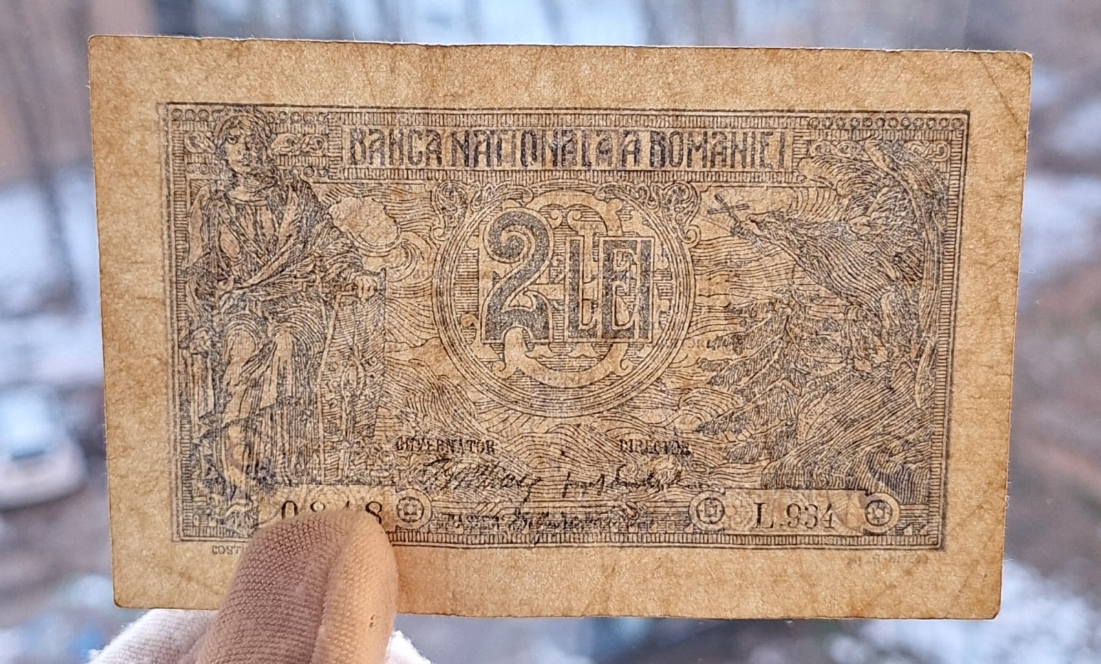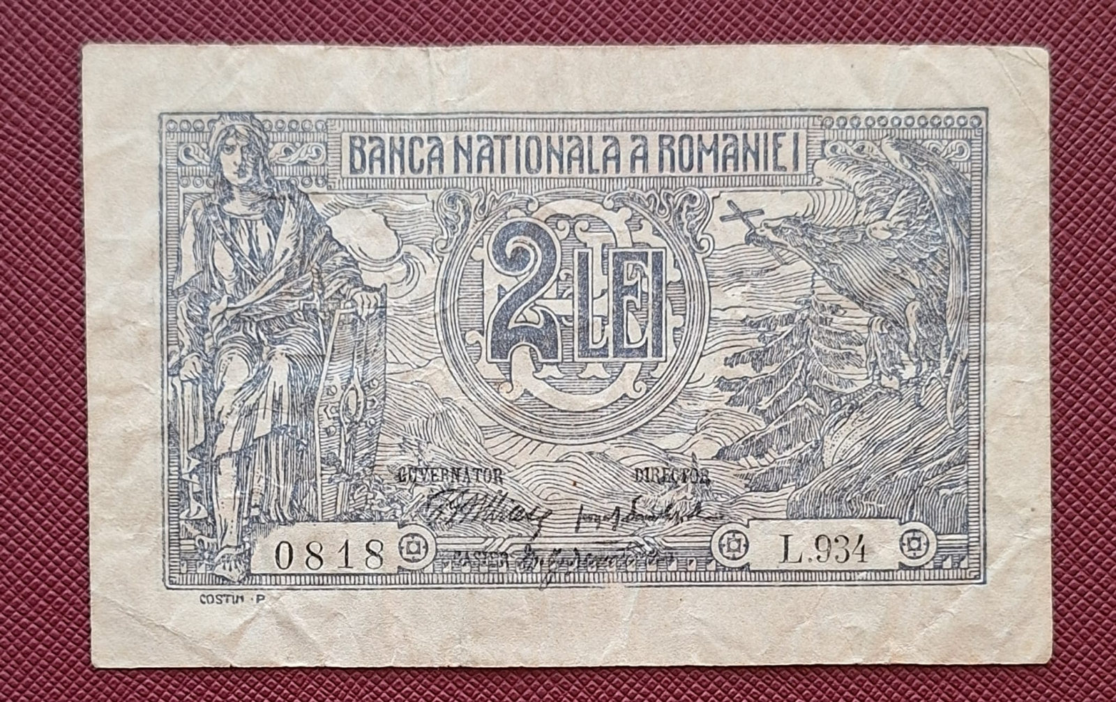 Romania, 2 lei 1915, semnatura rara Danielopol, serie din 3 cifre: L934