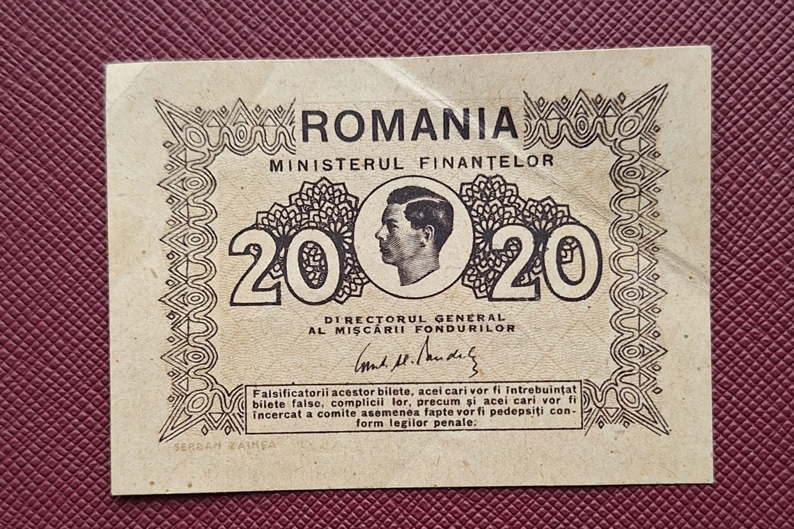 Romania 20 Lei 1945, Regele Mihai, aproape necirculata