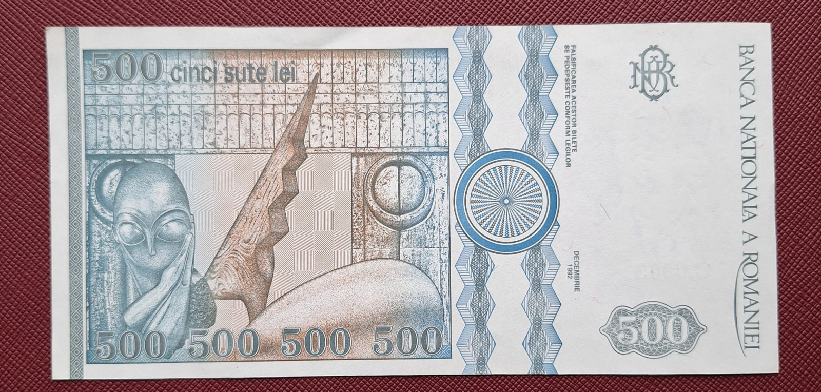 Romania, 500 lei 1992 seria C.0003/162236, filigran fata, UNC-