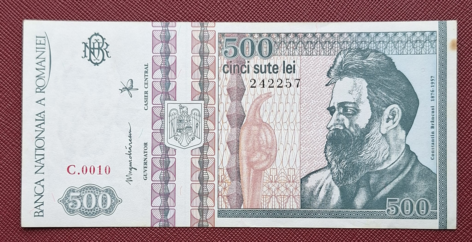 Romania, 500 lei 1992 seria C.0010/242257, filigran fata, Aunc