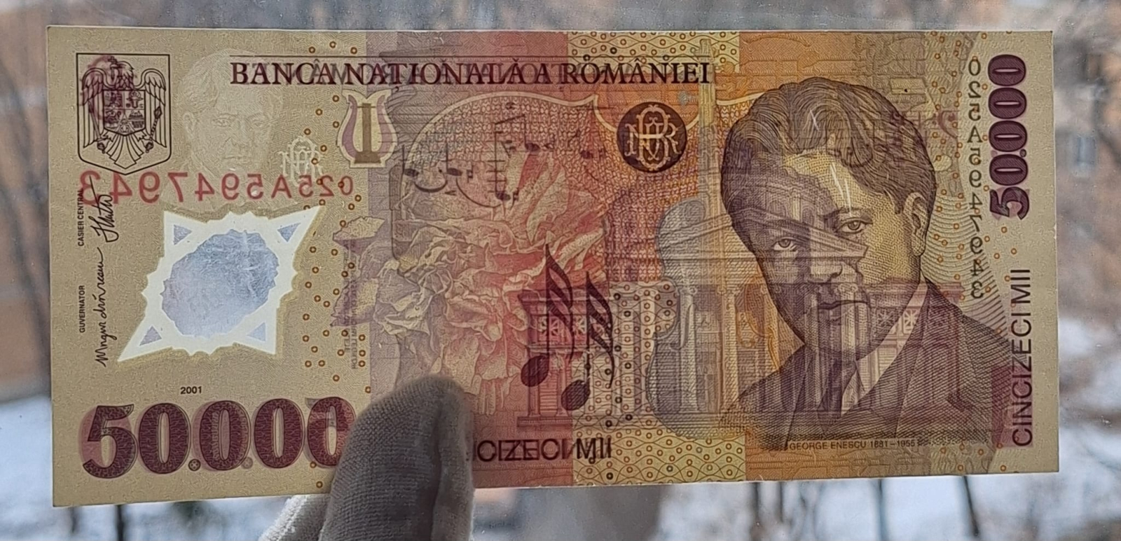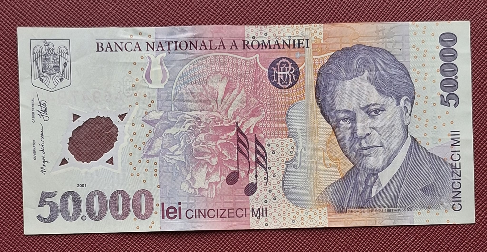Romania, 50000 lei 2001 George Enescu, seria 025A5947943, circulata