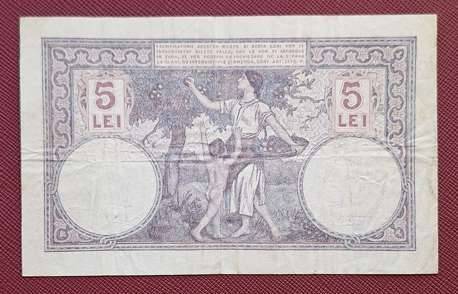 Romania bancnota 5 lei 1920, seria W.2498/0525/62449525, circulata