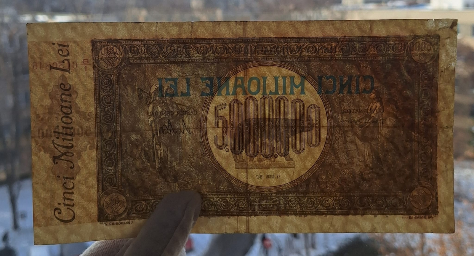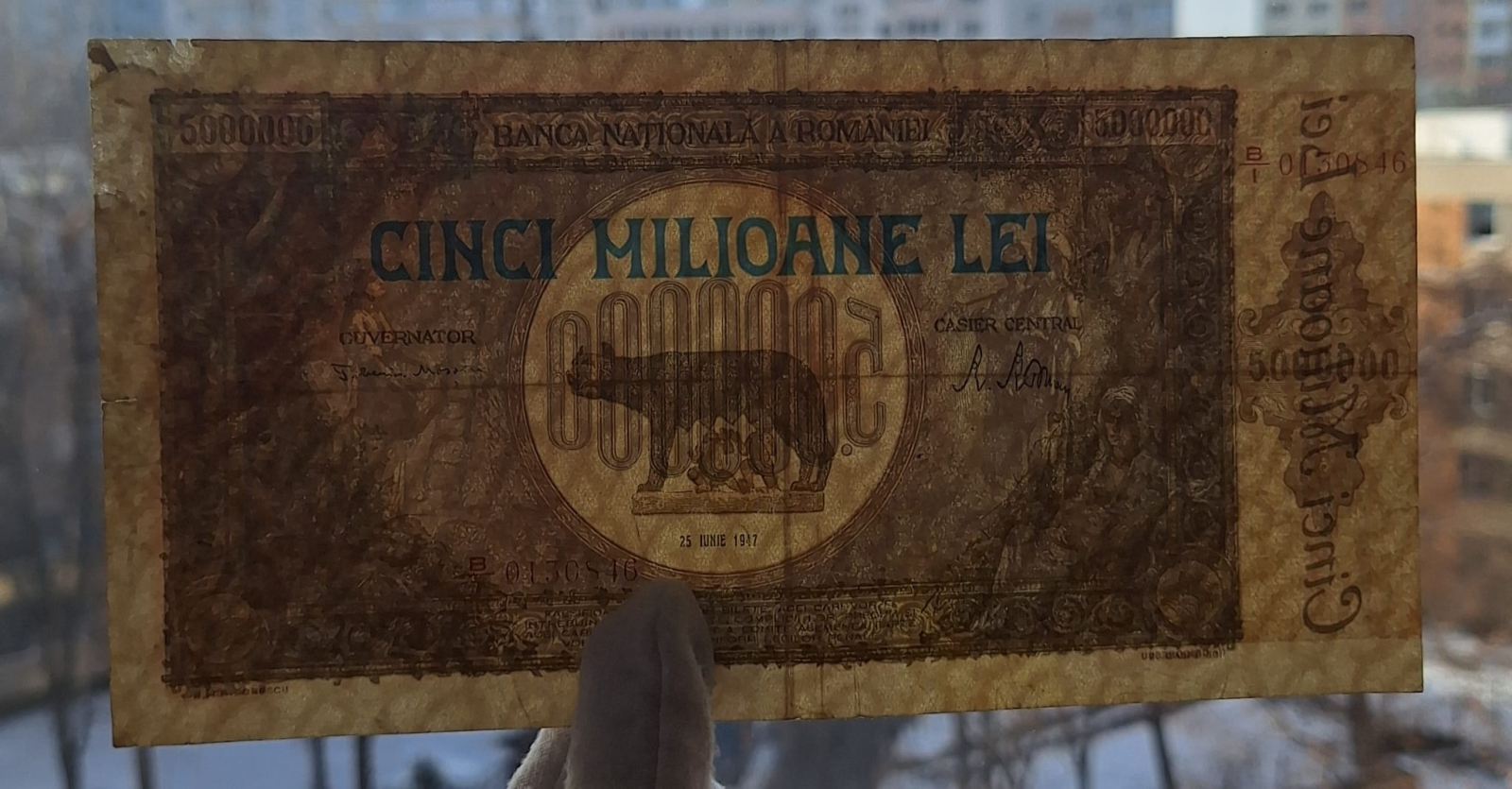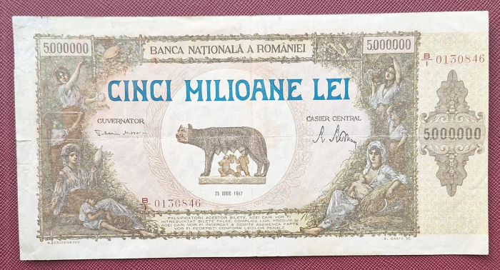 Romania bancnota 5 milioane lei 1947, circulata