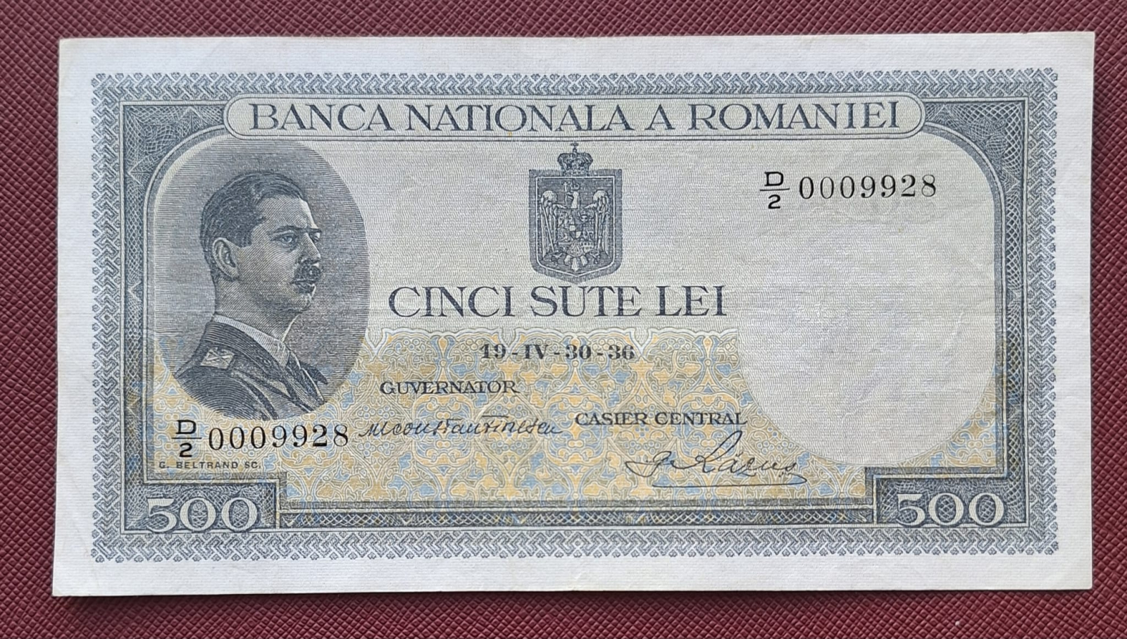 Romania, bancnota 500 lei 1936, Regele Carol II, circulata, stare buna