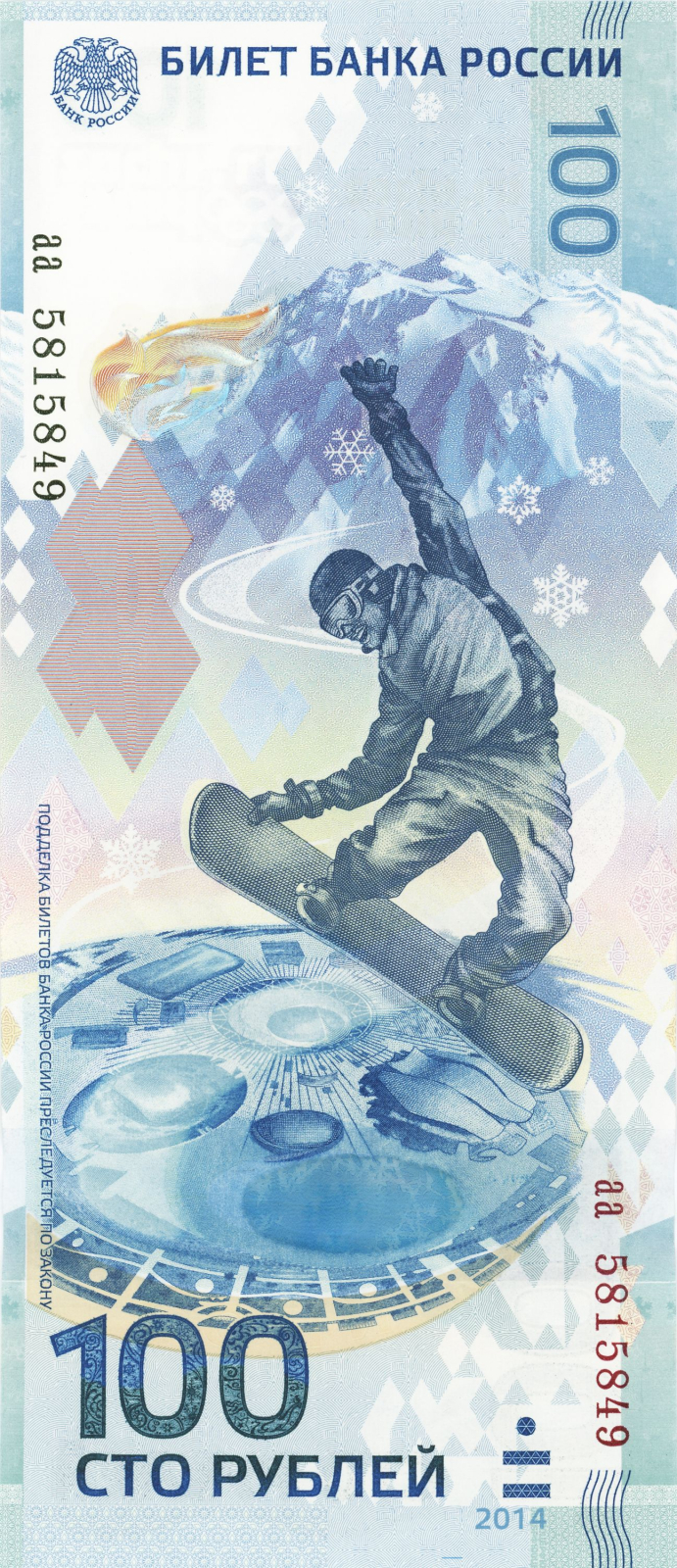 Rusia 100 Ruble 2014, JO Iarna de la Sochi, necirculata