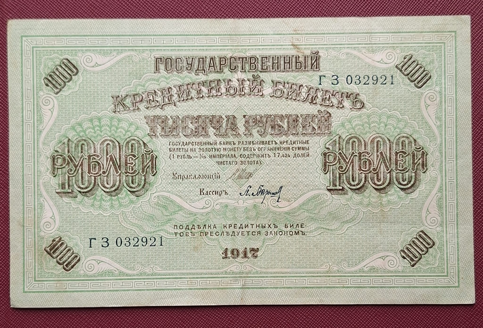 Rusia 1000 Ruble 1917, circulata