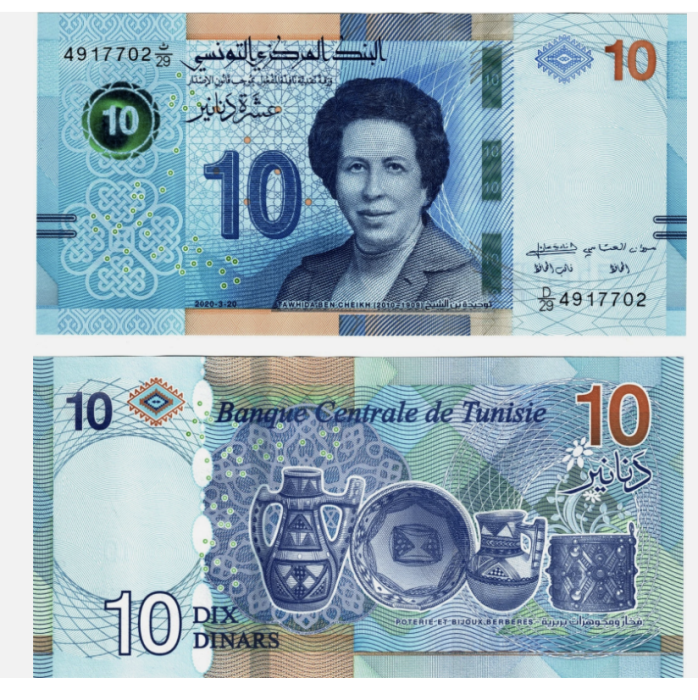 Tunisia 10 Dinari 2020, Dr. Tawhida Ben Cheikh, prima femeie medic, necirculata