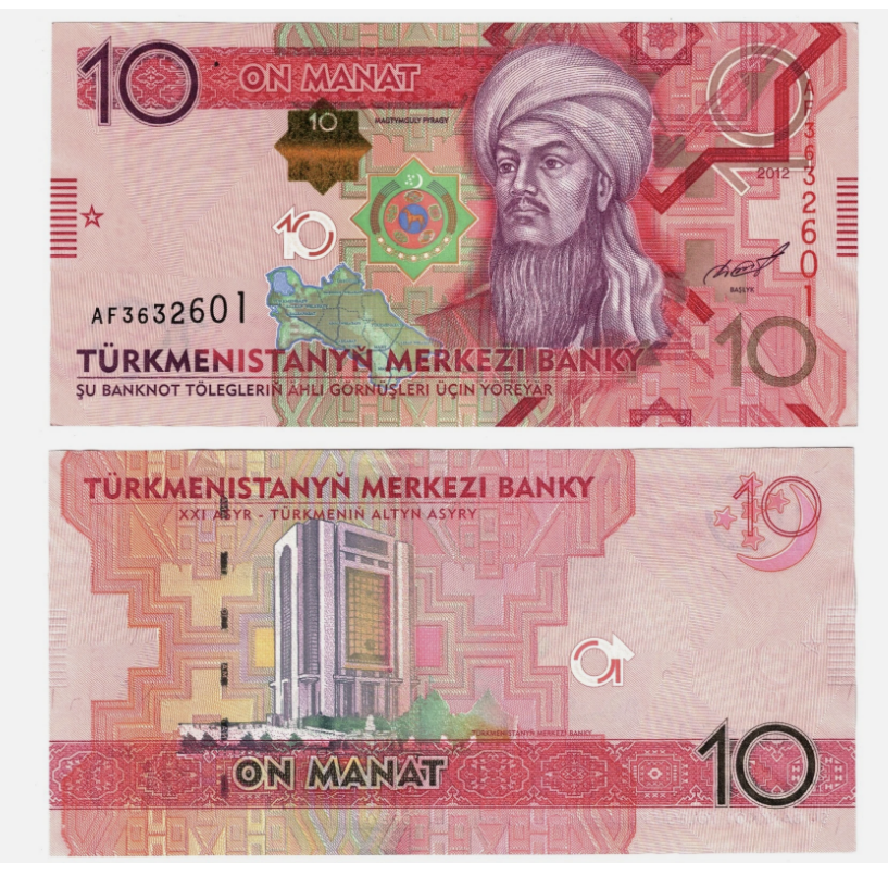 TURKMENISTAN 10 manat 2012, Magtymguly Pyragy, invatator spiritual, UNC