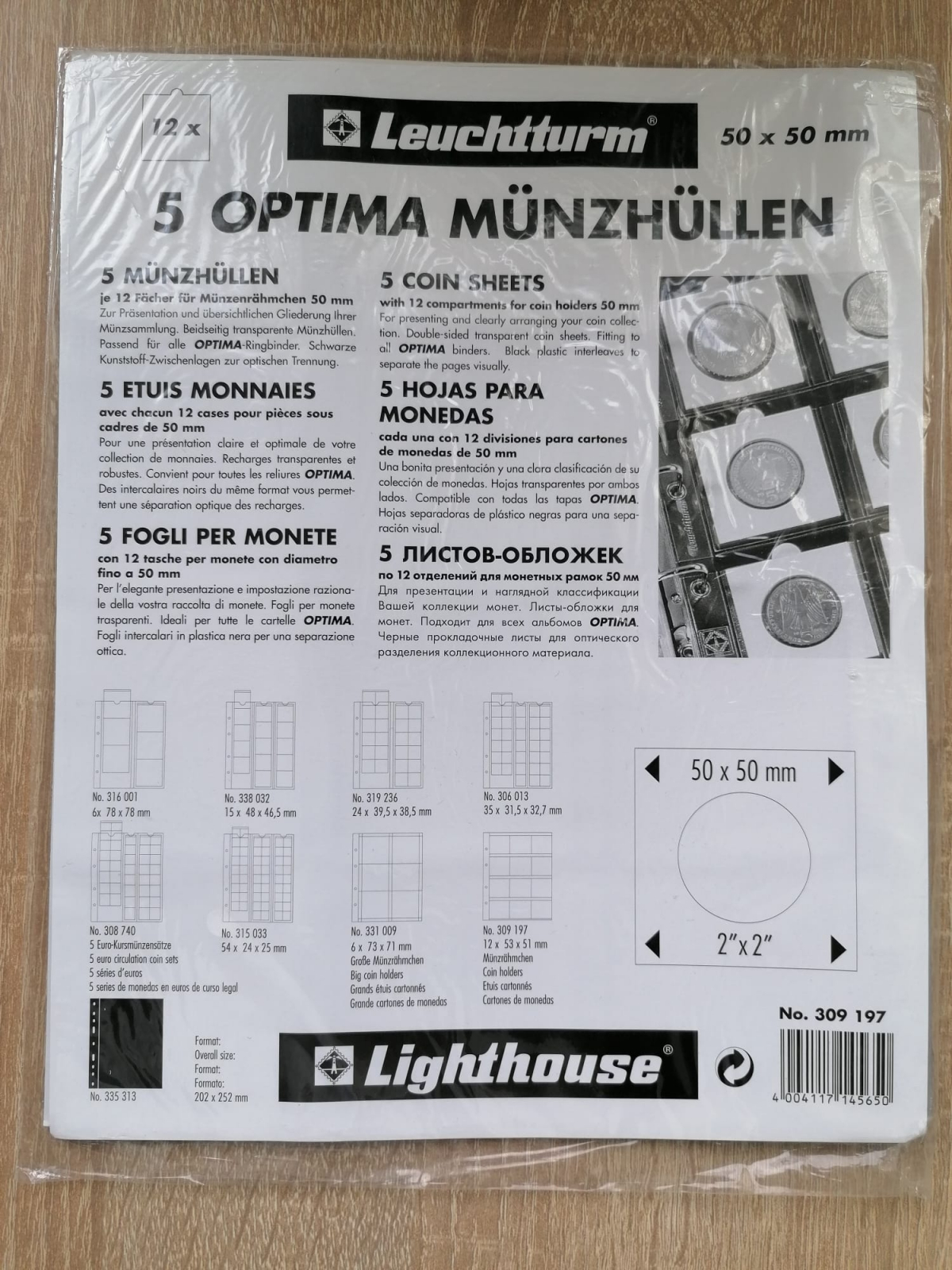 Pachet 5 Folii pentru monede in cartonase, Leuchtturm cu 12 buzunare per folie