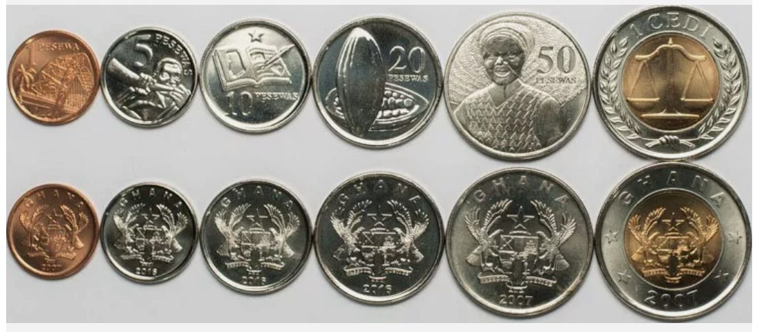 Ghana set 6 monede 2007-2016: 1,5,10,20,50 Pesewas, 1 Cedi, UNC