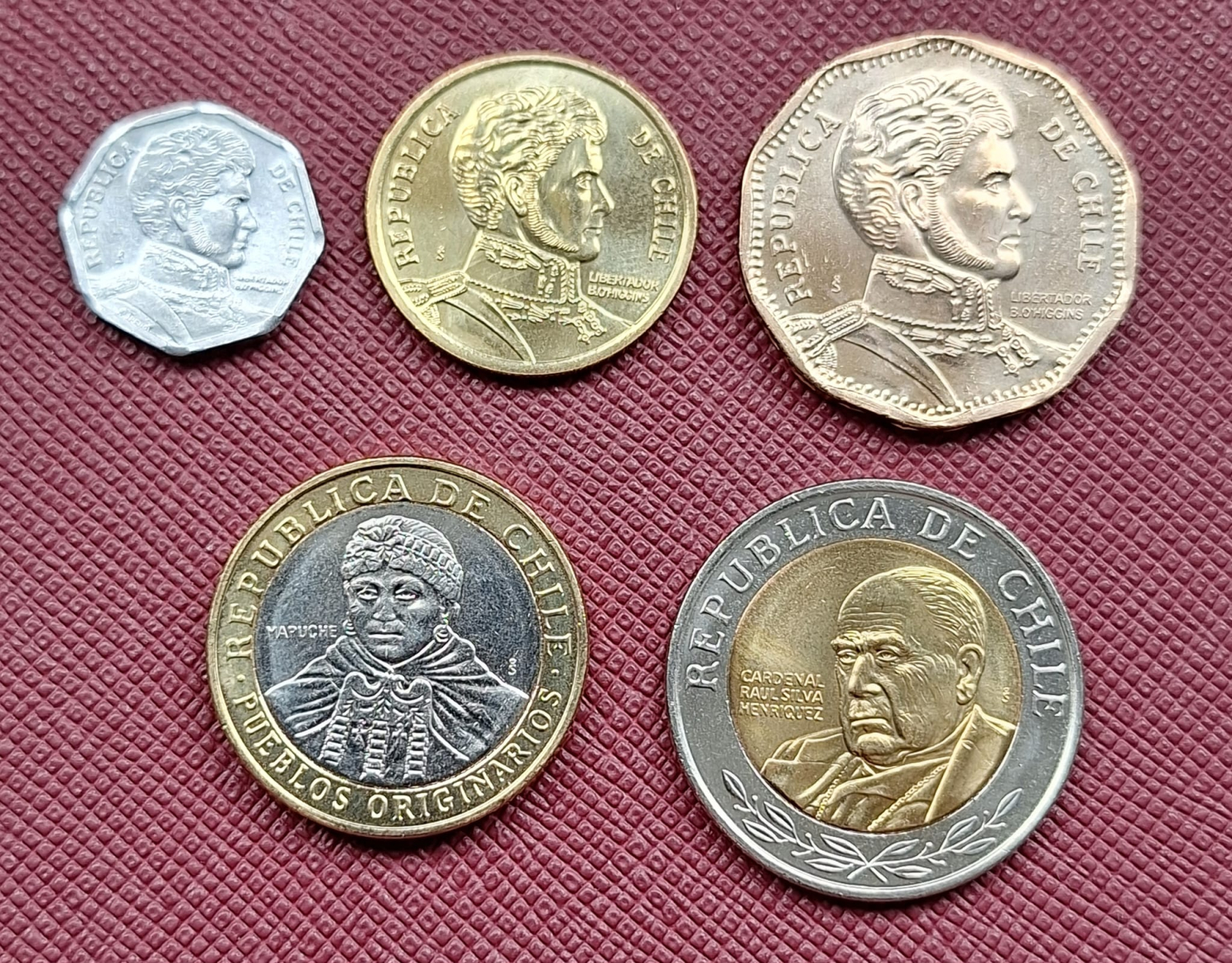 Chile set 5 monede 2004-2022: 1,10,50,100,500 Pesos, necirculate
