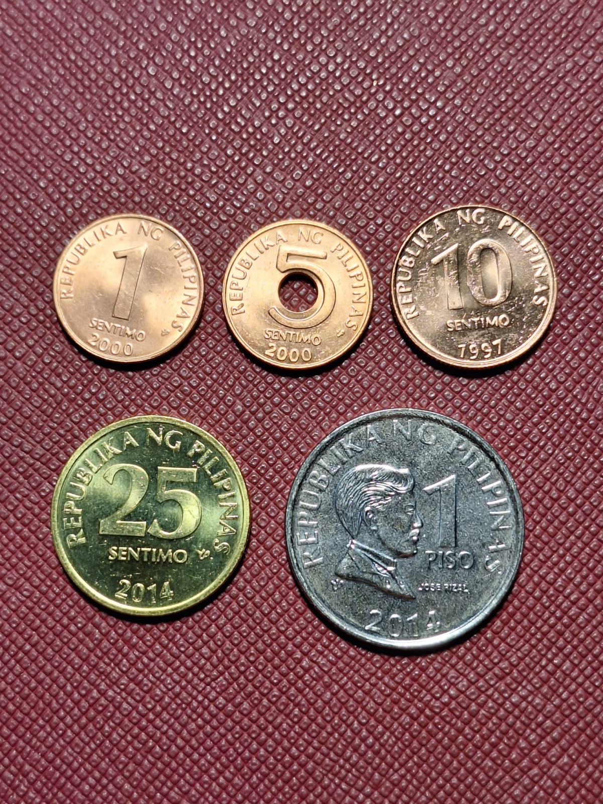 Filipine set 5 monede 1997-2014: 1,5,10,25 Sentimo, 1 Piso, necirculate