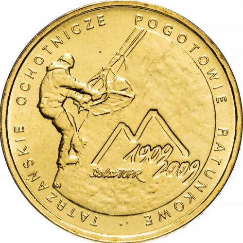 Polonia 2 zloti 2009, 100 ani de la fondarea Serviciului Voluntar de Salvare din Munții Tatra, UNC