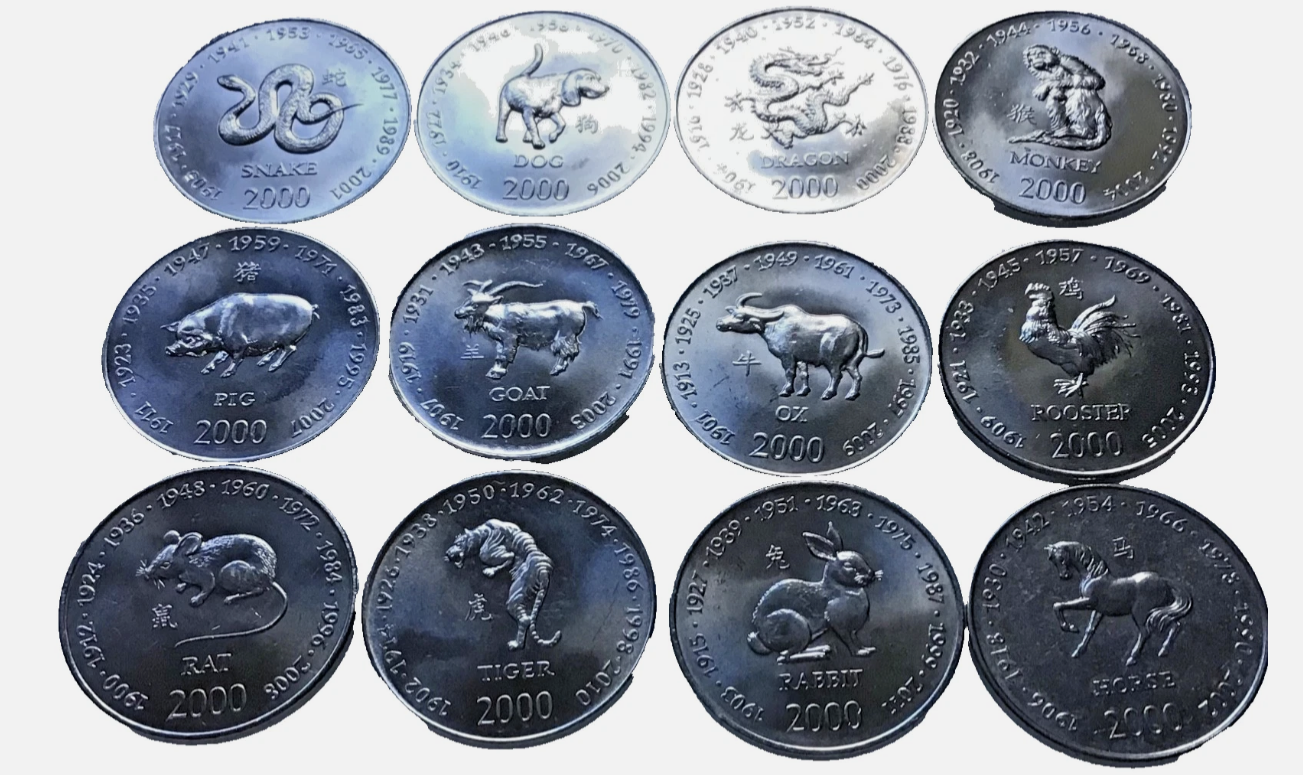 Somalia set 12 monede x 10 Shilingi, an 2000: Horoscopul Chinezesc, UNC