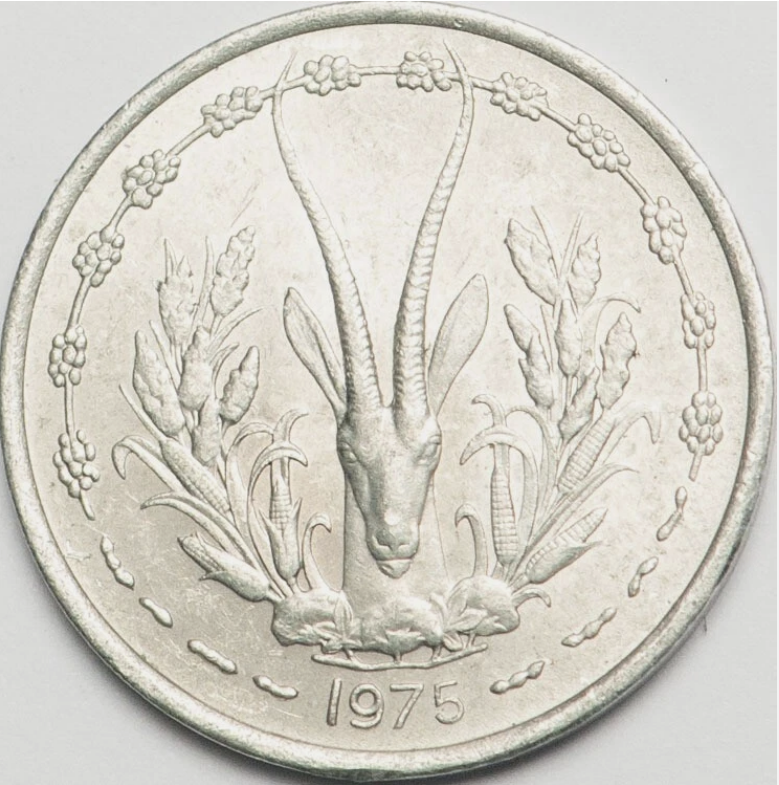 Statele Africii de Vest, 1 Franc 1975, Gazela, aUNC