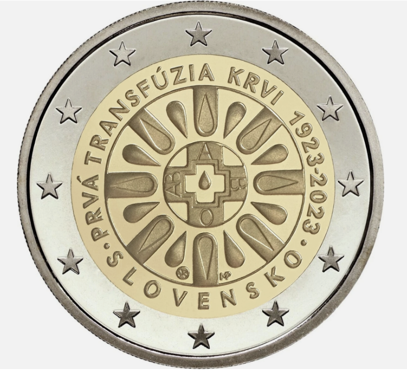 Slovacia 2 euro 2023, 100 ani de la Prima transfuzie de sange, UNC