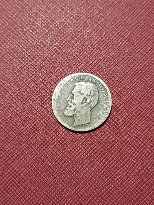 | Descriere revers | inscripţia CAROL I REGE AL ROMANIEI şi efigia regelui spre stînga, cerc perlat exterior. Sub gît este scris numele gravorului, A. SCHARFF. .... |