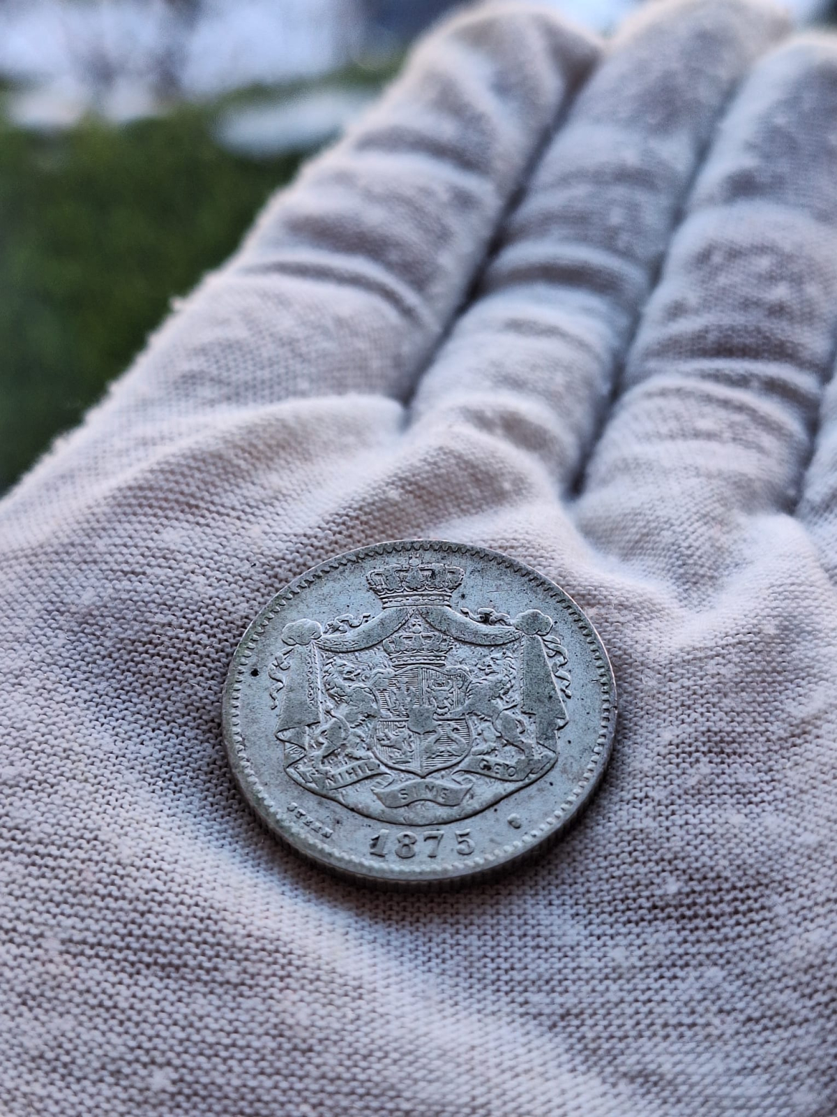 Sigla folosită de monetăria José Allard din Bruxelles, ce apare pe monedele de 50 bani, 1 leu şi 2 lei (1872 - 1876), nu este o halteră, aşa cum se precizează în literatura de specialitate, ci un portret - o faţă sau poate o mască. Acest lucru se poate observa numai pe monedele aflate într-o stare de conservare excepţională. Este interesant de observat că portretul diferă în funcţie de valoarea monedei şi de anul emisiunii. .. Chipul apare pe multe monede bătute la Bruxelles, fiind folosit ca marcă pentru monede timp de cîteva secole, mai ales în perioada medievală. ..si nu este o faţă oarecare, ci este chipul arhanghelului Mihail, patronul oraşului Bruxelles..