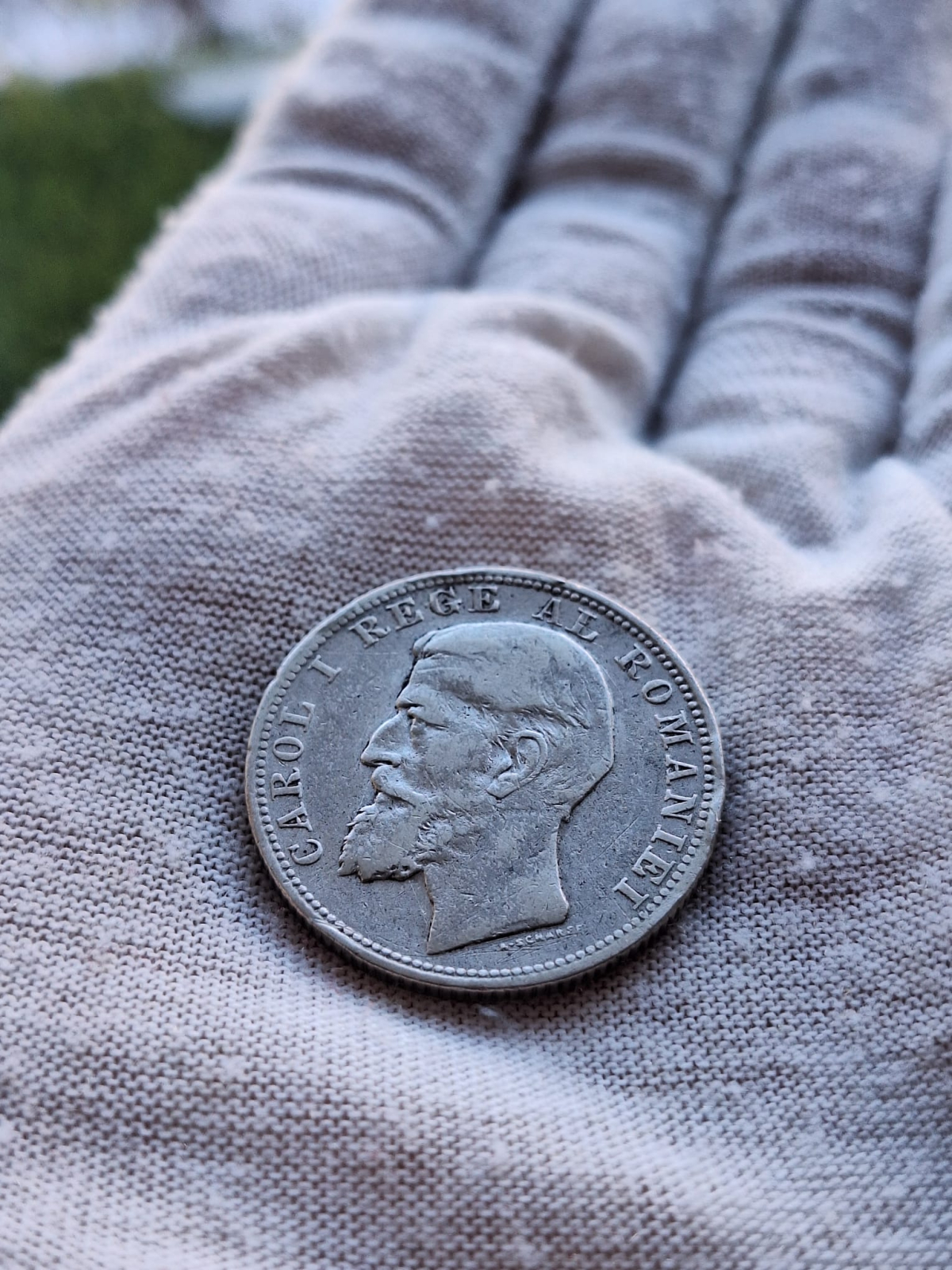 | Descriere revers | inscripţia CAROL I REGE AL ROMANIEI şi efigia regelui spre stînga, cerc perlat exterior. Sub gat este scris numele gravorului, A. SCHARFF. |