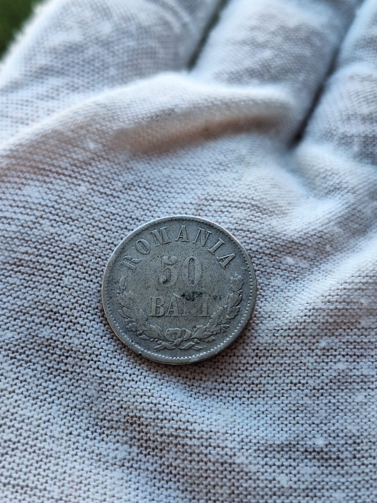 | Descriere avers | Inscriptia ROMANIA, valoarea nominală 50 BANI cu o cunună împletită din ramuri de laur şi de stejar si cerc perlat la exterior ... |