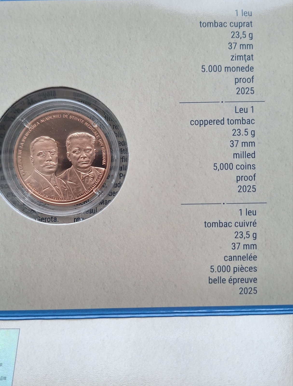 Reversul monedei redă portretele și numele doctorilor Constantin I. Angelescu și Daniel Danielopolu și inscripția „90 DE ANI DE LA INFIINTAREA ACADEMIEI DE STIINTE MEDICALE DIN ROMANIA”.